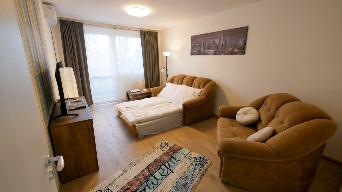Tapasztald meg a nyugalmat ebben a hangulatos, kétszobás lakásban, amely Debrecen városközpontjától 1,6 km található. A max 4 vendég elszállásolására alkalmas lakás könnyű hozzáférést biztosít a főbb busz-, troli és villamosjáratokhoz, biztosítva a kényelmes közlekedési lehetőségeket. Egy rövid sétával városi piac, edzőterem, élelmiszerboltokat, gyógyszertárat és egyéb alapvető kényelmi szolgáltatásokat is találsz, így a szálláshelyen eltöltött időd kényelmessé teszi.