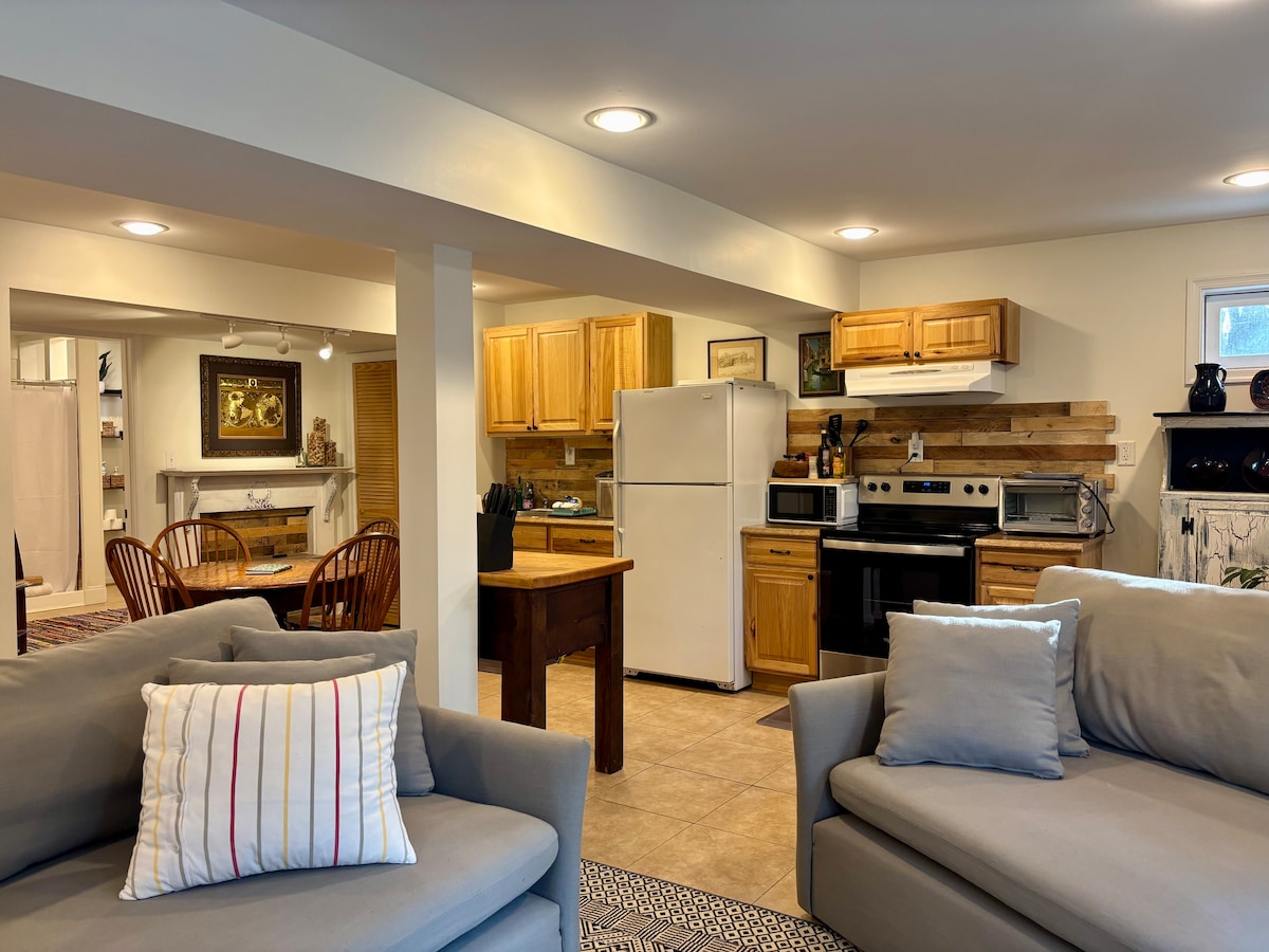 Una suite eficiente de un dormitorio para alquiler vacacional. Situado en el distrito histórico del centro de Harpers Ferry. El Trundle es una acogedora unidad económica con entrada privada, cama tamaño queen, baño y cocina americana. El patio compartido tiene una mesa de pícnic y un columpio para disfrutar del clima veraniego. Hay acceso a internet y televisión por cable. ¡Desayuno incluido! Ven a recorrer el canal C&O, recorre la historia americana, camina por el sendero de los Apalaches, contempla las maravillas de la naturaleza y accede a Washington DC en tren de cercanías.