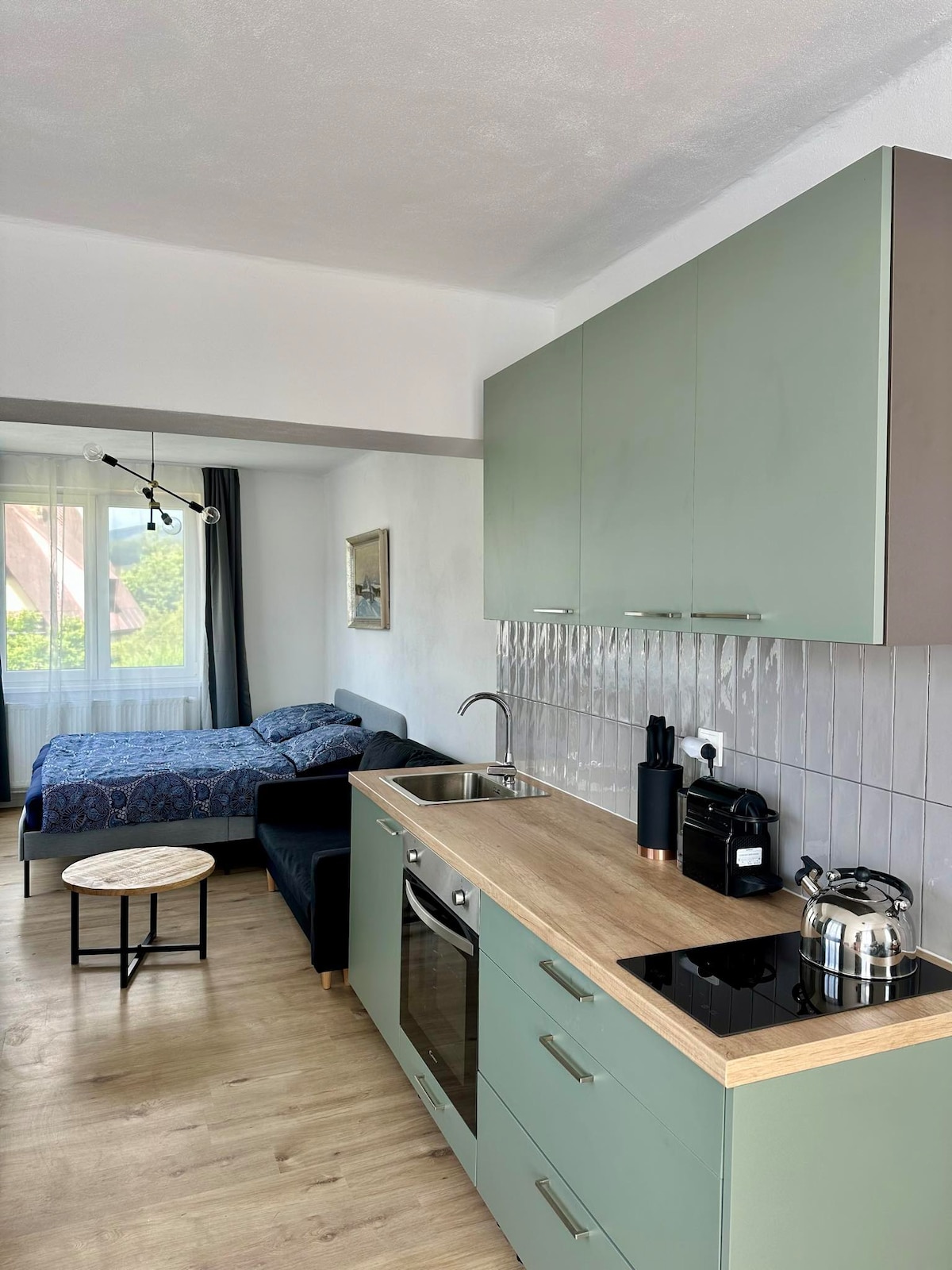 Acogedor apartamento tipo estudio (19 m2), ubicado en un edificio de apartamentos de finales del siglo XIX y principios del XX, en el centro de Sokołowska. Cocina totalmente equipada: lavavajillas, nevera, placa de inducción, hervidor de agua, así como diversos utensilios de cocina. El lugar ha sido diseñado para estancias cortas de parejas. También hay un colchón inflable (incluido) para 3 personas. Somos lugareños, estaremos encantados de darte consejos sobre la región :) Hablamos inglés.