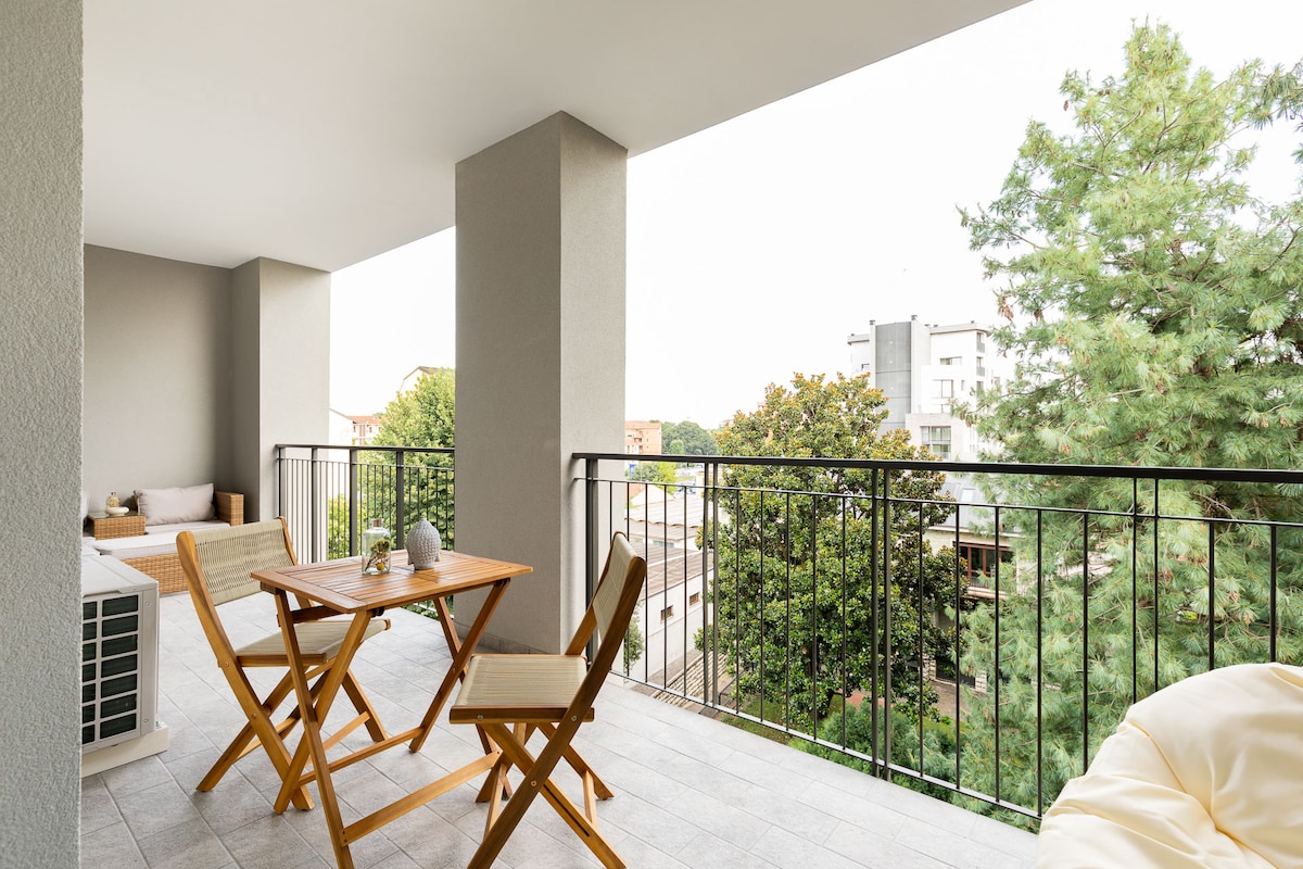 OpenAir, un ático moderno y elegante junto a Corso Sempione. El ático tiene una terraza de 55 m2, 3 dormitorios dobles, 2 baños,sala de estar con cocina,aire acondicionado. Fantástica ubicación para llegar al Duomo con tranvías 1/19 a 2 minutos de casa. Si te encanta caminar, las nuevas pasarelas del Corso te llevan a Parco Sempione en 15 minutos. Mico,City Life y ChinaTown están a 10 minutos. El mercado cercano de los sábados y martes es animado. Se puede llegar a New Terme Montel en metro o autobús en 20 minutos.