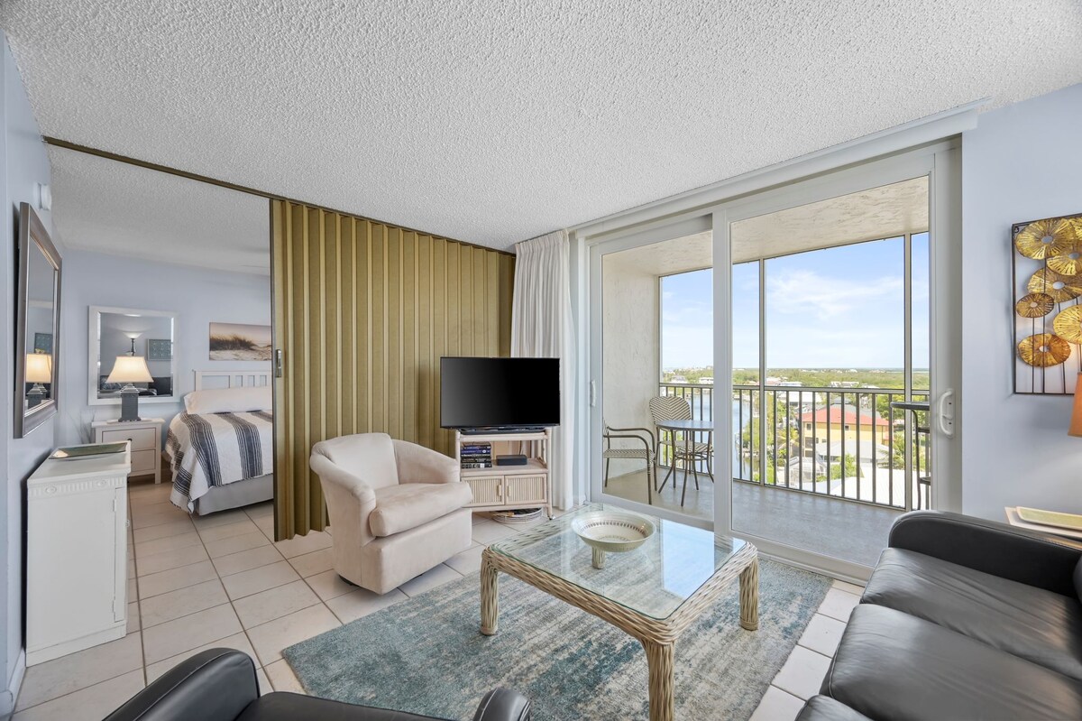 Te damos la bienvenida a nuestro condominio costero. Estamos ubicados en el noveno piso del edificio 1 en Beach and Tennis Club. Hermosas puestas de sol te esperan en nuestro condominio estudio de 1 dormitorio con vistas tanto al golfo como a la bahía. Estamos a pocos pasos de la playa y de los restaurantes. Los servicios como las piscinas compartidas y el balcón privado están abiertos y disponibles para relajarse y descansar mientras escuchas los relajantes sonidos de las olas.
