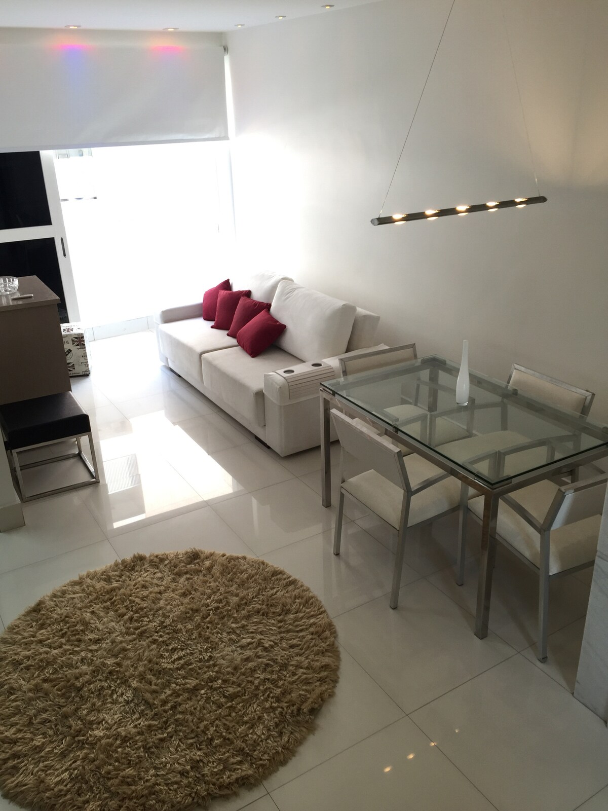 Piso recientemente renovado, a 550 metros de la playa, cuenta con servicio de limpieza diario, piscina, 1 estacionamiento con servicio de valet, WIFI de fibra 200 MB y canales de alta definición. Espacio para 4 personas, con una cama doble, un sofá cama y un colchón. Microondas, horno eléctrico, encimera, cafetera, arrocera, arrocera, utensilios básicos para 4 personas y aire acondicionado dividido. Completa el trousseau incluido. NO aceptes MASCOTAS.