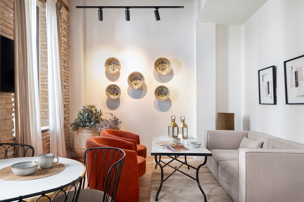 Apartamento con entrada independiente en edificio histórico de principios de SXX. Recién reformado con calidades de primera y mobiliario que lo hace único y diferente. Suelo de madera de roble y obras de artistas locales. Barrio de San Julián , centro histórico pero fuera del bullicio turístico para conocer la auténtica Sevilla local. Rodeada de iglesias y conventos en una calle muy tranquila pero a 5 minutos de la Alameda y calle Feria, donde están los bares y zona más animada.
