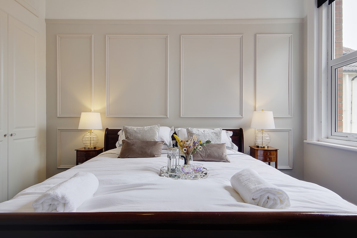 Luminoso y moderno apartamento de un dormitorio en una ubicación tranquila, a pocos pasos del centro de la ciudad de Bournemouth y de la playa. Ideal para parejas, viajeros solitarios o estancias de negocios. El estacionamiento gratuito, el wifi rápido y el acceso sin restricción de horario facilitan una estadía relajada y sin complicaciones. Limpio, cómodo y bien equipado para descansos cortos o visitas más largas.