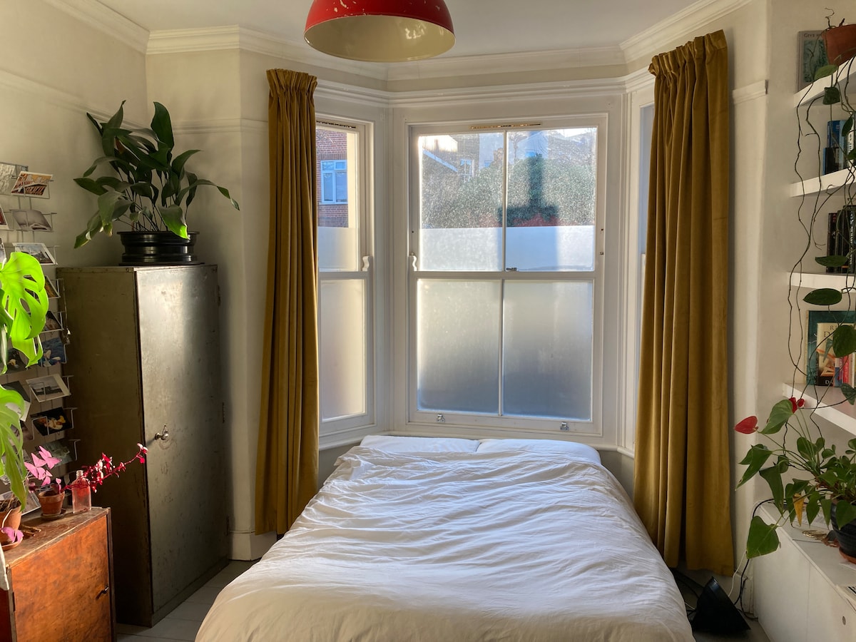 Este es un refugio oculto, un apartamento tranquilo de dos pisos escondido al fondo de una casa victoriana en el este de Londres, muy cerca de los mejores lugares: Victoria Park, Hackney Wick, Ldn Fields y Broadway Market, y a solo 15 minutos del centro de la calle Oxford en el metro. Vivo en la casa cuando no tengo huéspedes, ¡y todos comentan qué espacio único y acogedor es! El dormitorio que se muestra es solo para los huéspedes y totalmente privado. El espacio también es muy tranquilo, con dos espacios privados al aire libre.