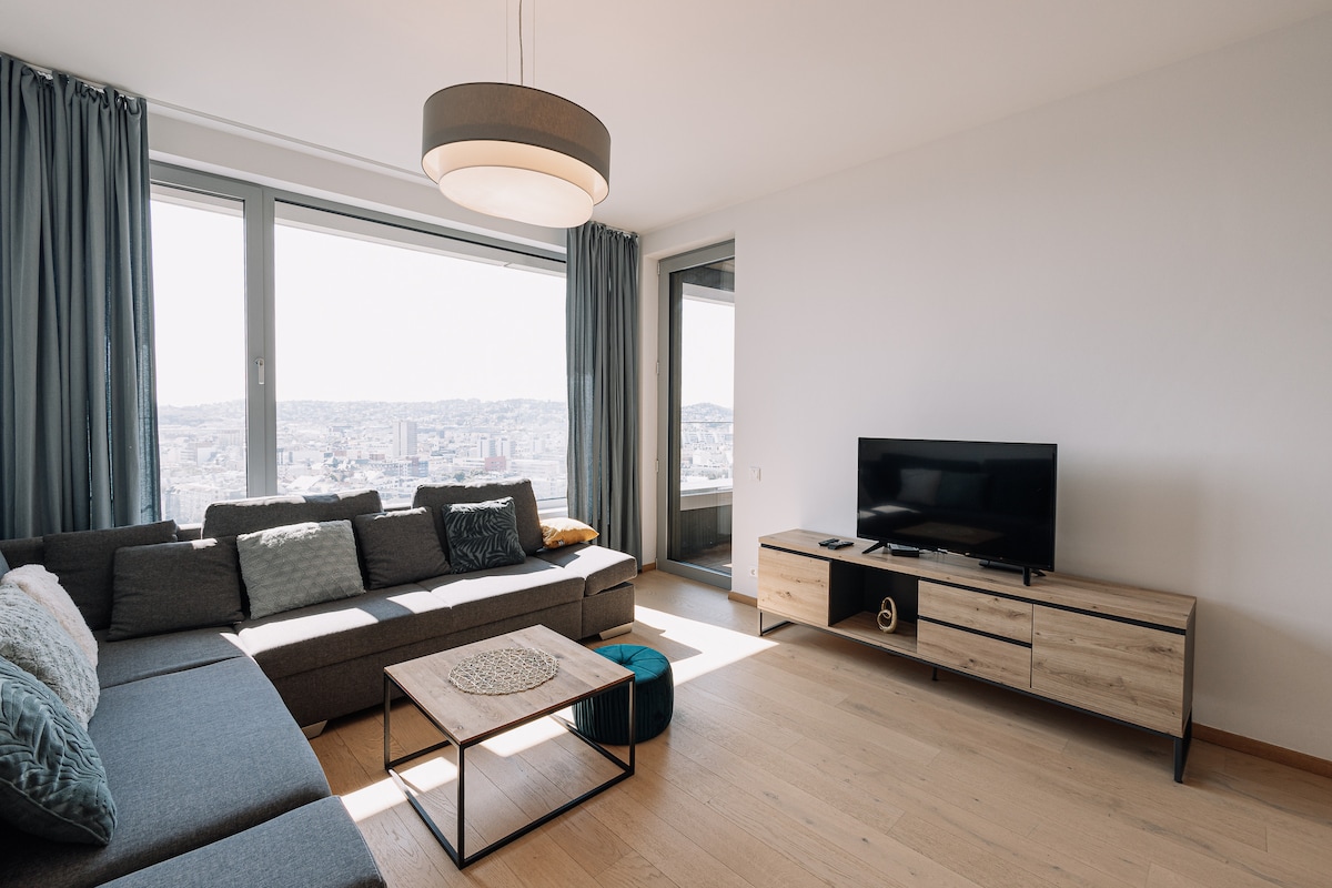 This special place is close to everything, making it easy to plan your visit. The apartment is located on the 18th floor of the Panorama city high-rise building. Parking is available directly in the building FREE OF CHARGE Nearby is the Eurovea shopping center, with many restaurants, shops, a theater, a cinema, and a promenade along the Danube. The old town is around the corner.