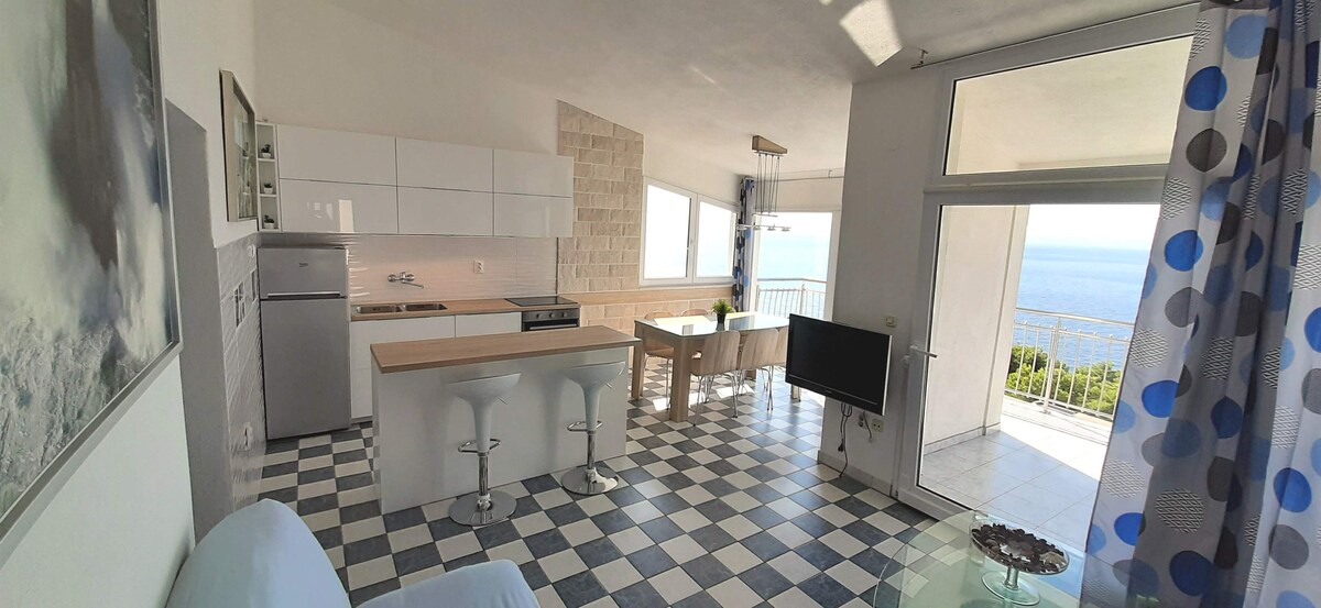 Este elegante apartamento estudio con galería, decorado con amor y gran esfuerzo, le brinda la oportunidad de disfrutar al máximo de sus vacaciones con una vista mágica del mar. Está equipado con todo lo necesario, hay una cama extra en la galería, es adecuado para familias, pero también para parejas. Disfruta de nuestra casa 😊