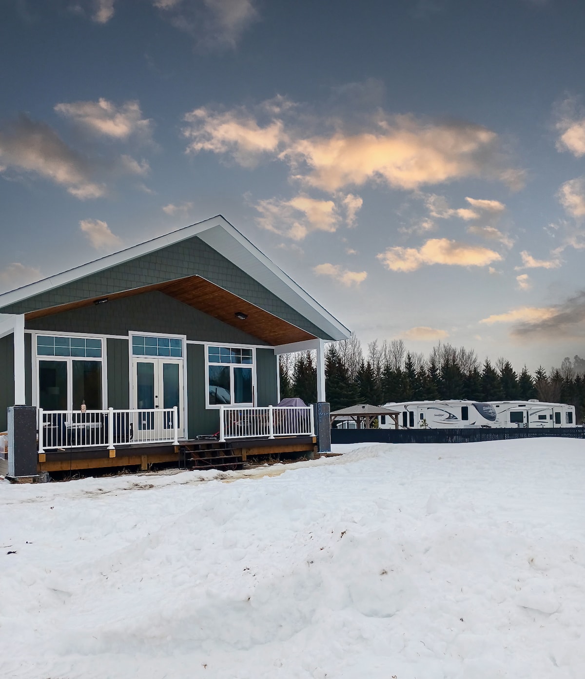 Relax with family and friends at this very peaceful, well treed half acre lot. - lot is 200 meters from lake -Boat launch and slip included -#1 Wheel barrel of wood per night -Seasonal Neighbors only on one side, empty lot on other side and a New 6’ fence providing privacy on the back end. - room for #2 - 24+ ft trailers or campers @ an extra $50 per unit / per night / paid directly to me! -power included .. #1 - gravel pad, #2,- on driveway