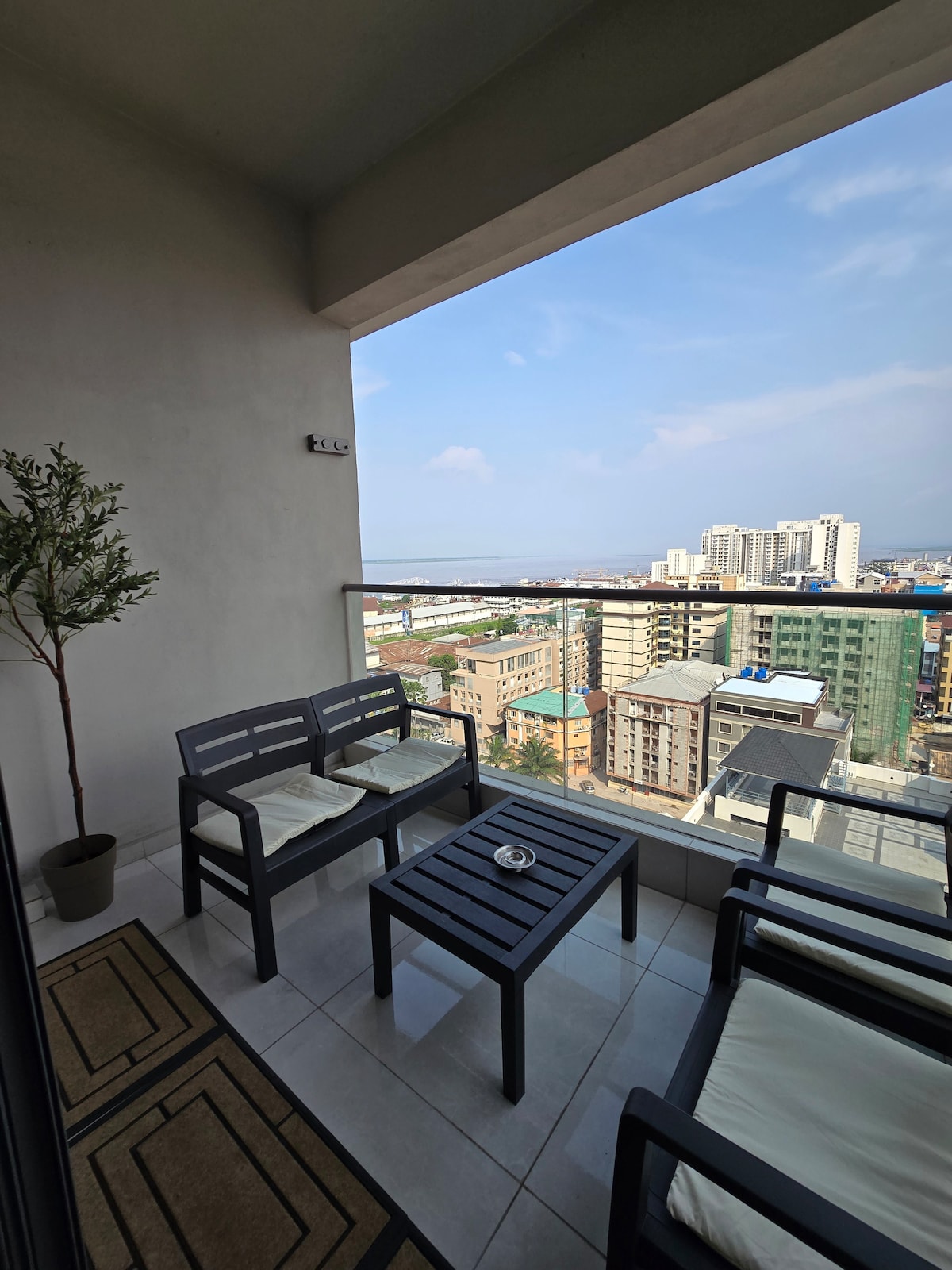 Profitez d'un séjour inoubliable dans ce magnifique appartement situé au coeur Kinshasa (Gombe) à quelques mètres du fleuve et de l'Avenue Tshatshi. Appartement au 16e étage offrant une vue magnifique sur la ville de Kinshasa Quartier et immeuble sécuritaires. Venez profiter de ce cadre magnifique pour vous ressourcer. Vous y trouverez tout ce dont vous avez besoin pour votre séjour (draps, serviettes, ustensiles de cuisine, casseroles, poêle, vaisselle). Ménage 2 fois par semaine inclus.