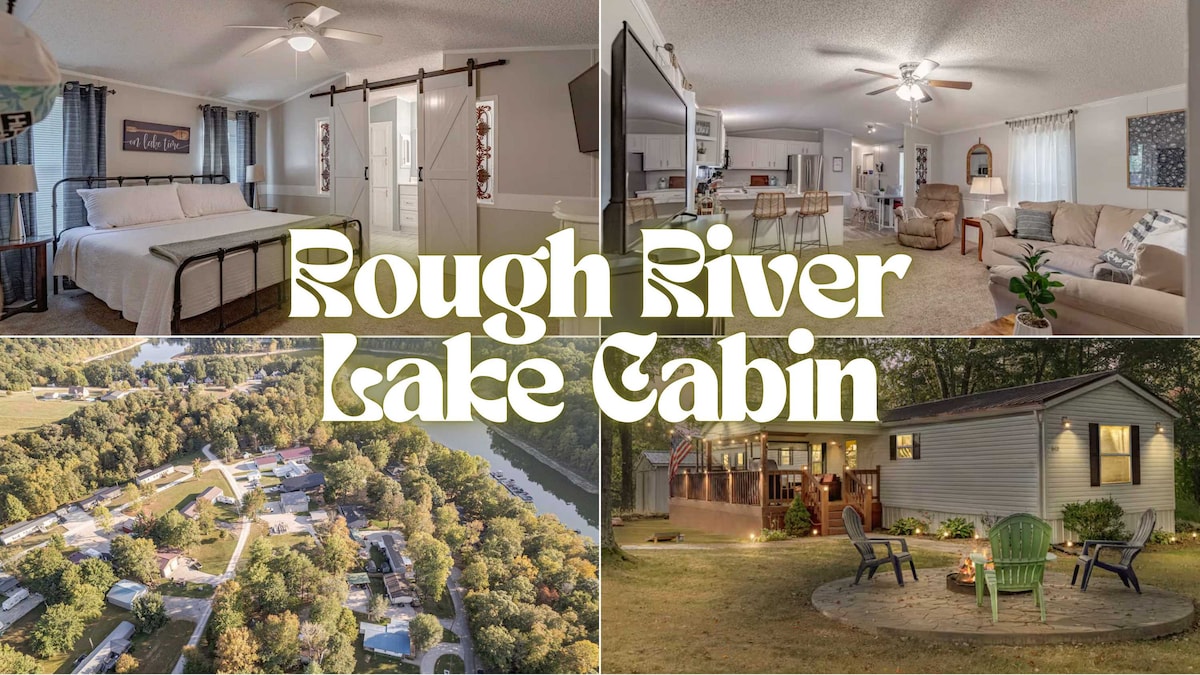 Acogedora casa de 3 dormitorios y 2 baños ubicada a orillas del río Rough con poco tráfico de barcos. Una rampa comunitaria para botes está convenientemente ubicada detrás de la casa y el lago principal está a solo 15 minutos en bote. A poca distancia en coche de las playas del parque estatal Rough River. Muchas zonas para dormir con dormitorios King y Queen y una habitación con literas con 5 camas individuales. El garaje de gran tamaño almacenará un barco o kayaks durante tu visita. ¡Disfruta de un partido de tenis de mesa, piscina o acurrúcate junto a la chimenea! ¡Perfecto para pescar!
