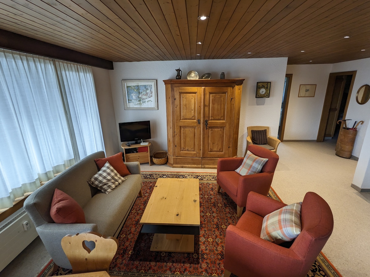 ***UBICACIÓN*** El apartamento está en el centro del pueblo. En las inmediaciones encontrarás restaurantes, tiendas, correos o bancos. ***IDÓNEO*** Ideal para parejas y familias (con niños). Sin embargo, no es apta para personas en silla de ruedas (hay escaleras en la entrada). ***COSTES ADICIONALES*** Dado que pagamos impuestos turísticos al municipio, cobramos un suplemento de 3,00 CHF. Para los niños de hasta 18 años no cobramos nada. Por favor, ponga la cantidad en la caja de la televisión.