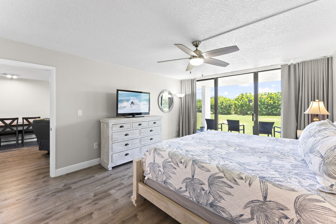 Condominio de 2 dormitorios y 2 baños con vistas cautivadoras del tranquilo Banana River, Port Canaveral y Rocket Lunches desde tu balcón privado. La cocina totalmente equipada tiene electrodomésticos de primera línea y encimeras de granito. Este apartamento cuenta con un diseño moderno con lujosos suelos de baldosas. La relajante sala de estar cuenta con un televisor de 65 pulgadas. El dormitorio principal tiene una cama tamaño king y la bañera contigua tiene sus lavabos, tanto una bañera como una ducha de vidrio, espacio de escritorio y vestidor. El dormitorio #2 tiene una cama queen y un baño completo adyacente.