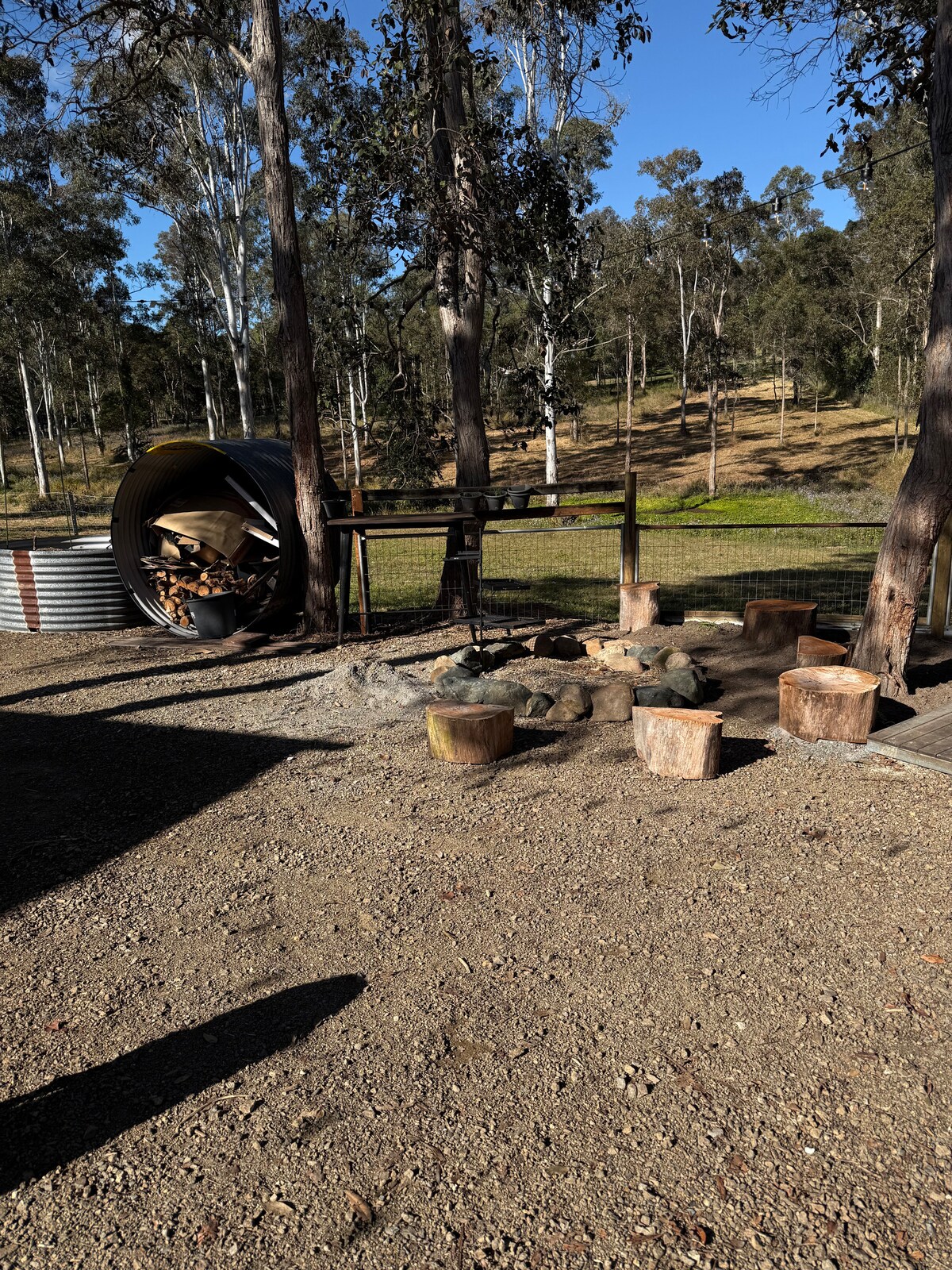 Relájate en nuestra cabaña de madera rústica con vistas a las extensas colinas verdes. Acurrúcate junto a la acogedora chimenea, disfruta del baño exterior protegido y privado, pasea hasta el arroyo para ver ornitorrincos o simplemente siéntate en la terraza y déjate cautivar por las impresionantes puestas de sol. Nuestra propiedad es totalmente ecológica; toda la electricidad se genera a partir del sol, recogemos agua de lluvia y tenemos nuestro propio sistema de aguas residuales respetuoso con el medio ambiente. La cabaña es ideal para una escapada romántica en pareja.