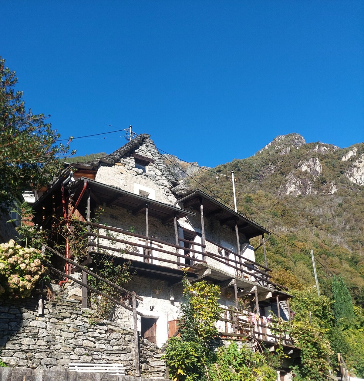 Casa Valeggia is located in a quiet residential area. The house has many windows and sun in charming position above the village of Maggia overlooking the waterfall of the Valle del Salto, nestled in a tropical garden, fully fenced and with a small swimming pool. Close to the house there is the possibility to swim in the river or at the waterfall. Recommended for people seeking tranquility, hikers and in search for privacy and contact with nature. Breath the fresh air from the valley.