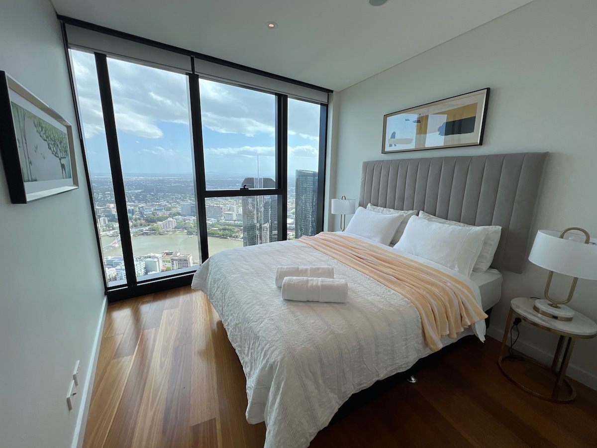 ¡Impresionante apartamento en el piso 57 con impresionantes vistas al río Brisbane y a la ciudad! Moderno 2BR en la prestigiosa Sky Tower. Camina hasta el centro comercial Queen St Mall, Eagle St Pier, South Bank o Kangaroo Point. Cocina completa, WiFi, piscina y acceso al gimnasio. Tu santuario en las alturas en el corazón del CBD: despierta por encima de las nubes, duérmete con las luces de la ciudad. Ideal para parejas, viajeros de negocios, familias o cualquier persona que crea que la vista es importante. ¡Reserva tu experiencia en Brisbane desde arriba!