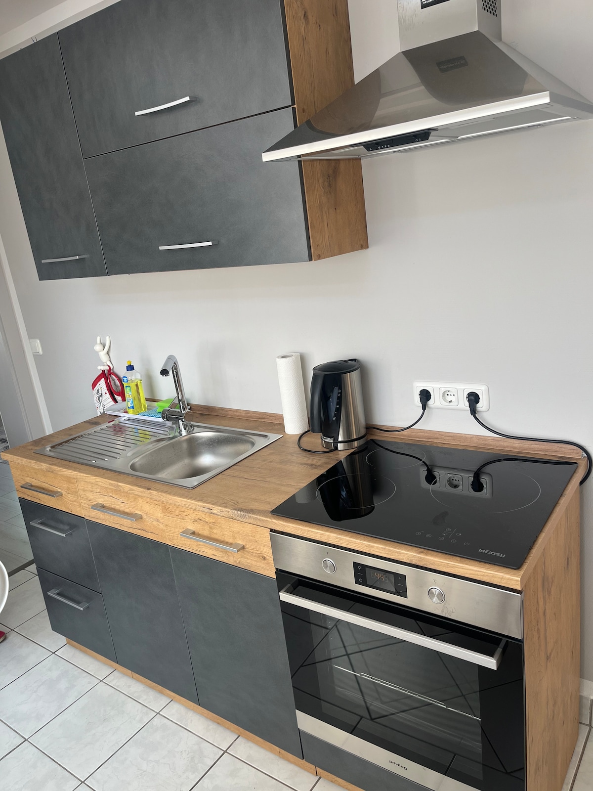 Una habitación bonita y acogedora te espera. Allí encontrarás una cama, un sofá, un armario, un televisor y una pequeña zona de estar. La manta es de gran tamaño. No hay cocina. Para comidas pequeñas hay platos, hervidor de agua, nevera y una placa de cocina para ti. El baño con ducha es para tu uso exclusivo. En el pasillo rara vez nos podríamos encontrar. También puedo ofrecerte una bicicleta. Si es necesario, puedes hacer el registro de entrada por la mañana.