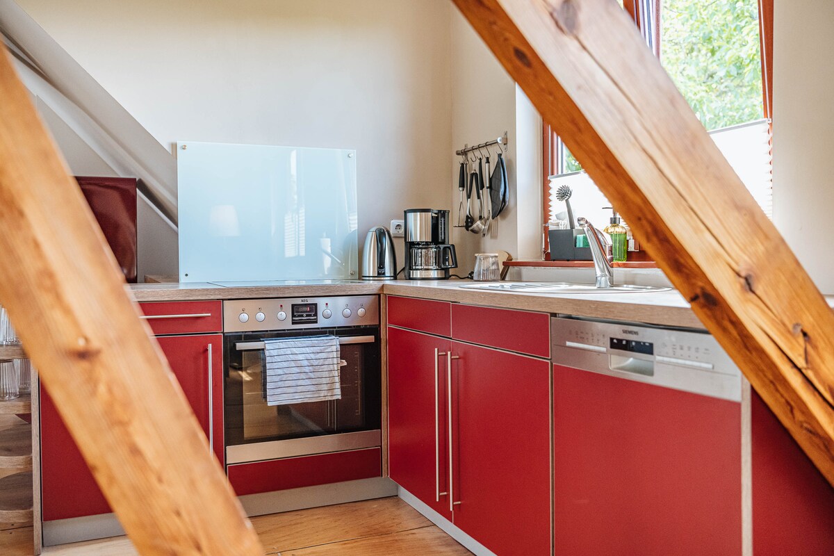 El impuesto turístico está incluido en la tarifa de reservación. Si viajas por negocios, ponte en contacto conmigo y te enviaré una oferta de anfitrión, ya que no tienes que pagar un impuesto turístico. Te alojarás en un apartamento cuidadosamente renovado con una terraza en la azotea en el piso superior de una antigua casa de asentamiento. (escaleras originales arriba) Puedes disfrutar de la comodidad y el gran clima en un apartamento limpio con arcilla y paja. ¿Estás de humor para esta experiencia especial? Gracias por tu reservación.