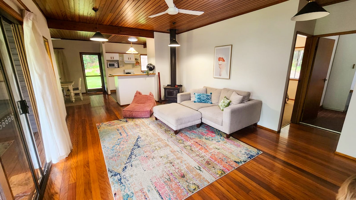 Relájate, desconecta y despreocúpate en la naturaleza. Birdsong es un paraíso para la observación de aves y vida silvestre nativa y para practicar senderismo. La cabaña está enclavada en una propiedad de 100 acres, en un valle aislado, rodeada de bosque y una reserva natural colindante, con vistas a las colinas circundantes. Te invitamos a que disfrutes de un descanso tranquilo en plena naturaleza, repleta de vida silvestre autóctona. Siéntate en el porche cubierto y experimenta la serenidad o pasea hasta el río cristalino con agujero para nadar.