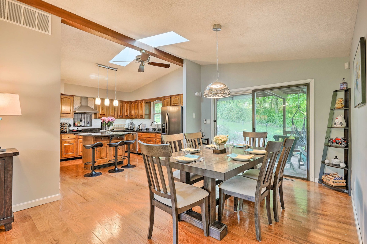 Este tranquilo oasis en el campo es perfecto para reuniones familiares, pequeños eventos o un lugar productivo para concentrarse en el trabajo. La casa está encaramada en una colina a las afueras de la ciudad, lo que ofrece una vista panorámica de las colinas onduladas. Disfruta del amanecer en el porche delantero y observa la puesta de sol en el patio trasero. Hay diversión durante todo el año con trineos en invierno y barbacoas en verano.