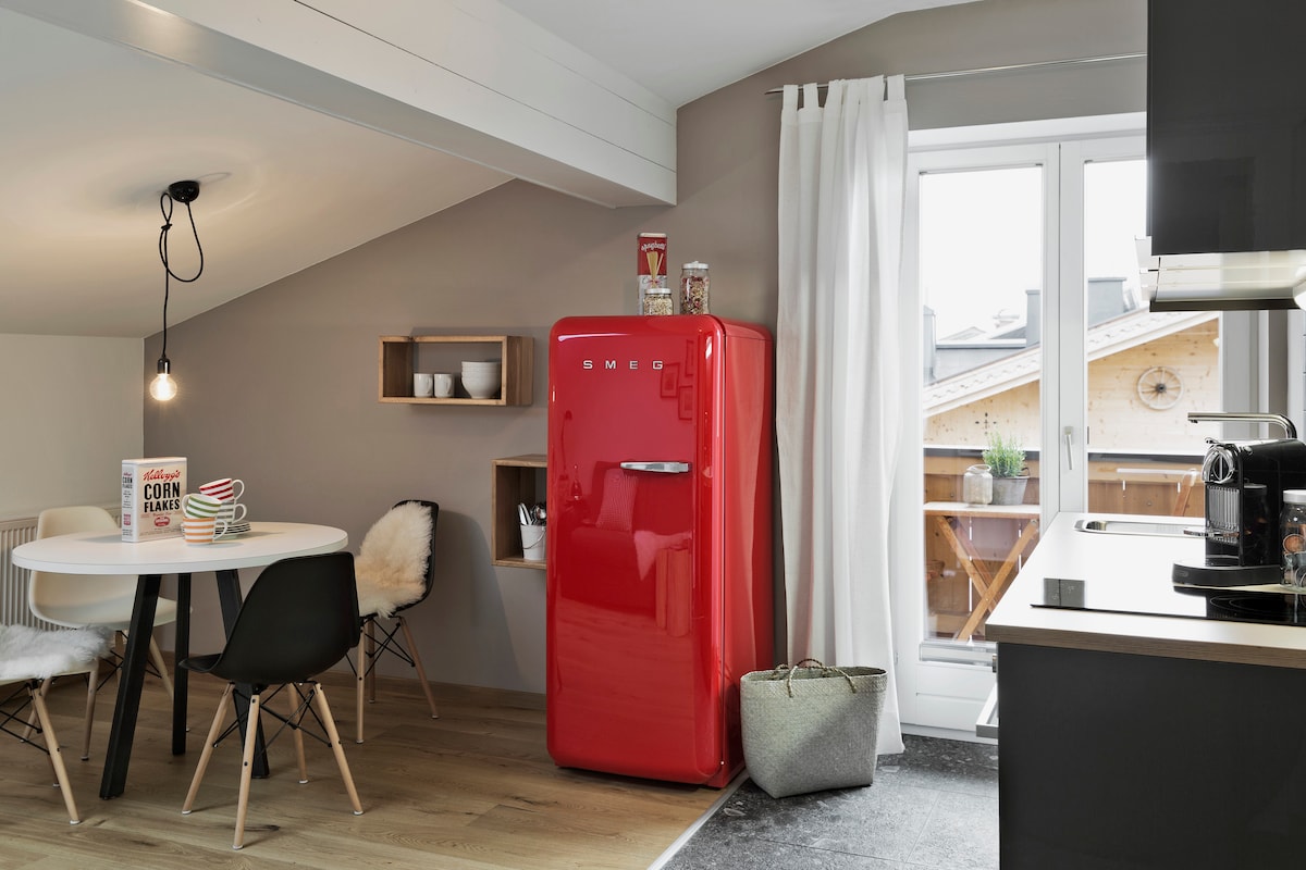 Das Apartment #5 ist unser kuscheliges kleines „Refugium“. Es ist ideal für den romantischen Urlaub zu zweit. Auf Wunsch kann die Couch im Wohnzimmer aber auch für ein bis zwei Kleinkind(er) ausgezogen werden. Die Dachschrägen und -fenster verleihen der charmanten Wohnung einen besonders heimeligen Charakter und vom Südbalkon genießt du einen herrlichen Blick auf die umliegenden Berge. SportBox Kostenloser Parkplatz direkt vor dem Haus. Loipe vor der Tür, Skilifte ca. 10 min.