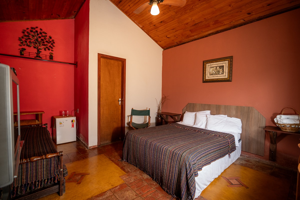 Ideal para quienes visitan Inhotim, nuestro chalet cuenta con cómodas habitaciones en una zona rural, familiar y muy minera. Un lugar de afecto y de sentir un poco la experiencia del campo. Tiene capacidad para parejas, grupos o familias. Ideal para 4 personas. El chalet es independiente, pero se encuentra en la misma propiedad que la casa de los anfitriones. Cuenta con cocina y despensa privadas, 2 dormitorios, 1 baño y 1 sala de estar. Nuestro espacio está cerca de Inhotim (10 km) y a orillas de la carretera que conduce al museo. Fácil acceso.