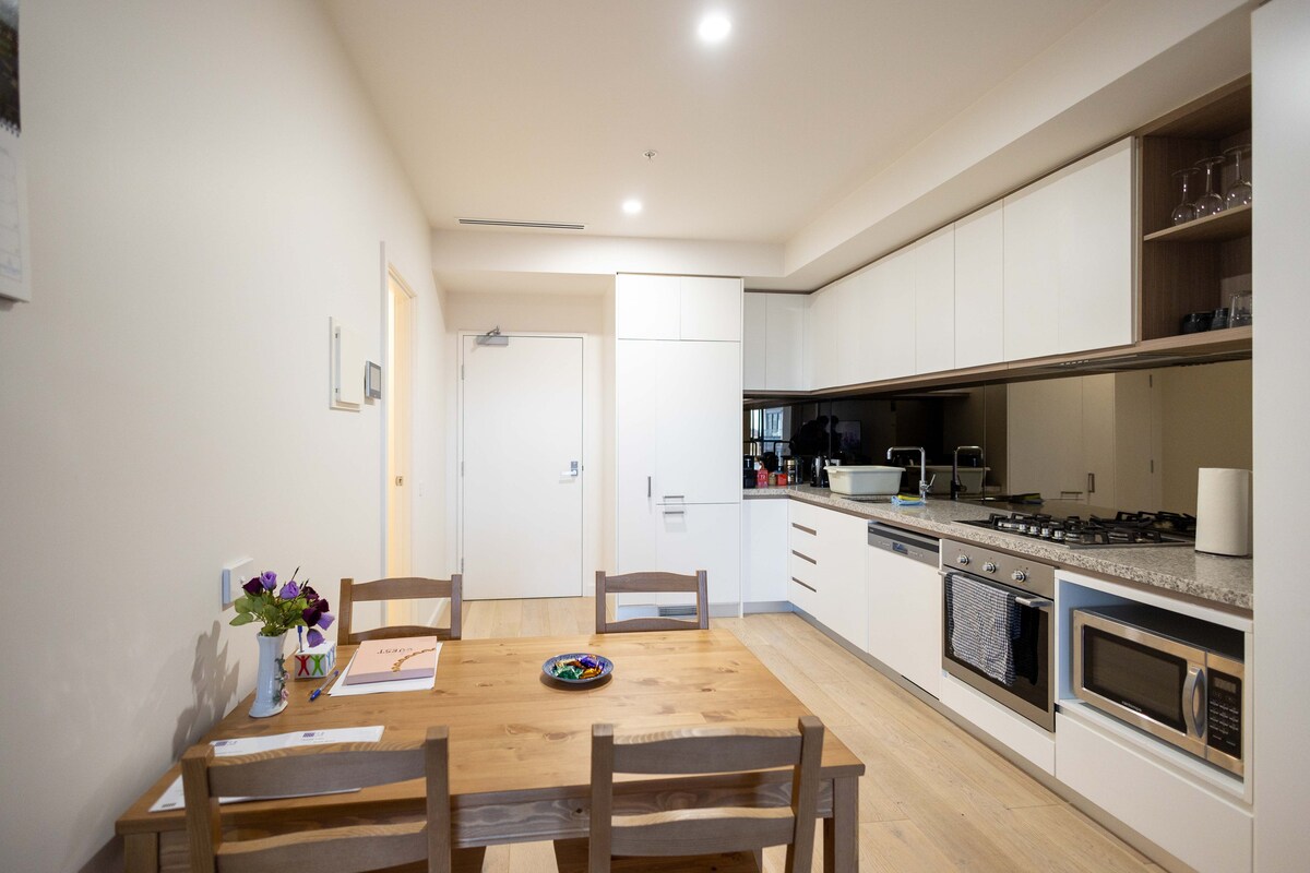 Este alojamiento tiene una ubicación estratégica: ¡será muy fácil planear tu visita! El magnífico apartamento de 2 dormitorios y 2 baños satisfará todos tus deseos. Una sala de estar de espacios abiertos, envuelve el balcón con impresionantes vistas panorámicas al CBD y a la montaña, disfruta de la agradable zona de comedor al aire libre. ¡Los fuegos artificiales de Nochevieja en nuestro balcón privado son una ventaja adicional! Baños modernos, calefacción y refrigeración en todos los dormitorios, plazas de aparcamiento cubiertas. A pocos pasos de la parada de tranvía, cafeterías, supermercado, parque local, a 5 km del centro de negocios de Melbourne.