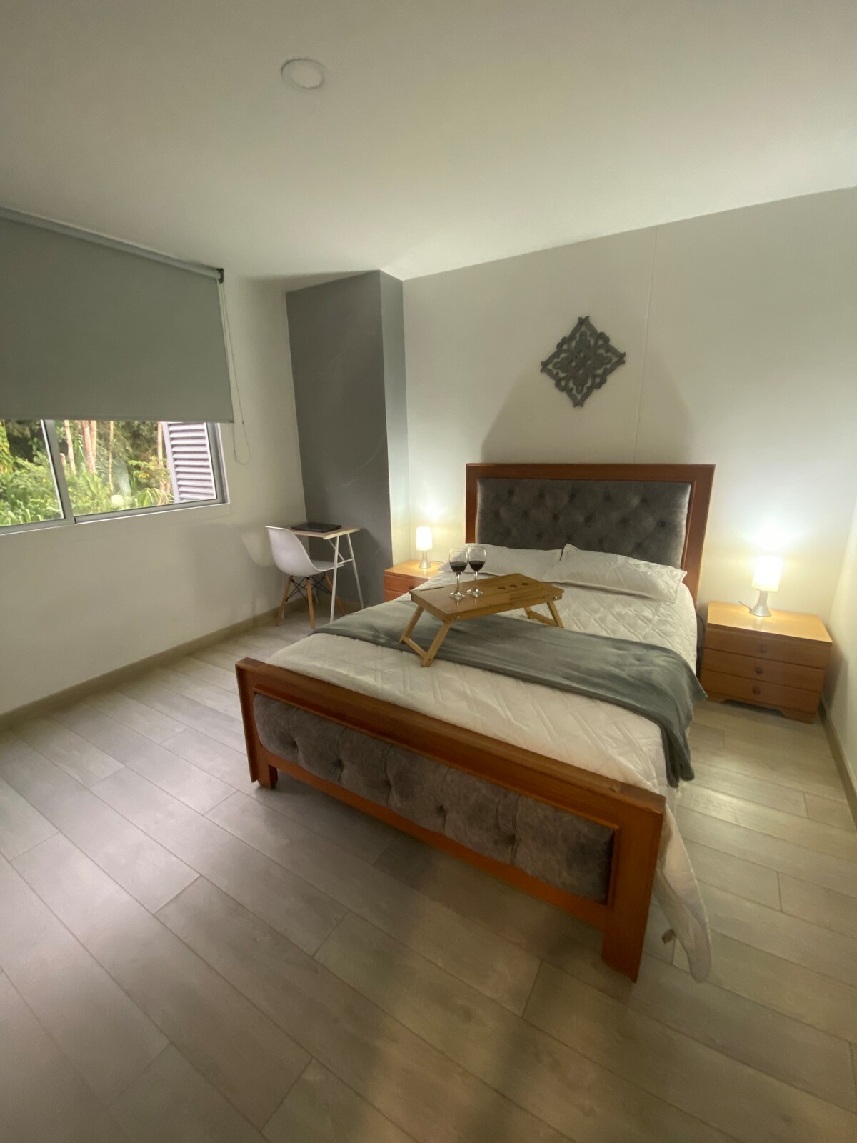 Relájate en este tranquilo y elegante apartaestudio renovado completamente por su suscrito anfitrión Super host de Airbnb. En la mejor ubicación de la ciudad, cerca a los mejores restaurantes y bares de la ciudad. En sus 39 mts2 puedes contar con moderna cocina Dotada con todo lo necesario para tu estancia, cómoda sala con amplio sofa , barra de desayuno, escritorio y silla, amplia habitación con cama matrimonial, smartv 40", ventilador, balcon y baño privado con agua caliente.