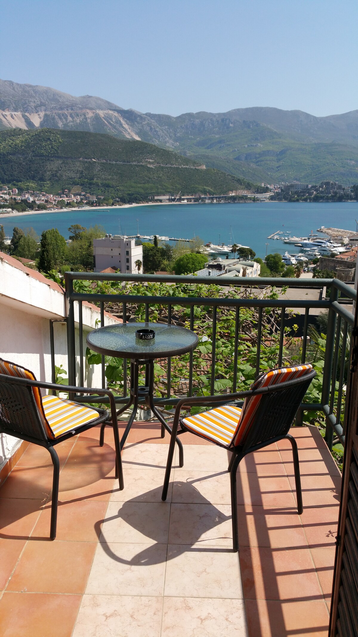 ¡Apartamentos cómodos y acogedores con una renovación moderna y una vista elegante de las montañas y la ciudad están encantados de dar la bienvenida a sus huéspedes! Para tu cómoda estancia hay 6 camas: 2 camas y un sofá cama. La cocina tiene todos los electrodomésticos necesarios: cafetera para café en grano, horno, microondas, hervidor de agua, Internet de alta velocidad, aire acondicionado y persianas enrollables en cada habitación. 2 terrazas con vistas a las montañas y la ciudad de Budva, 2 televisores inteligentes y Wi-Fi, 2 baños completos y una lavadora.