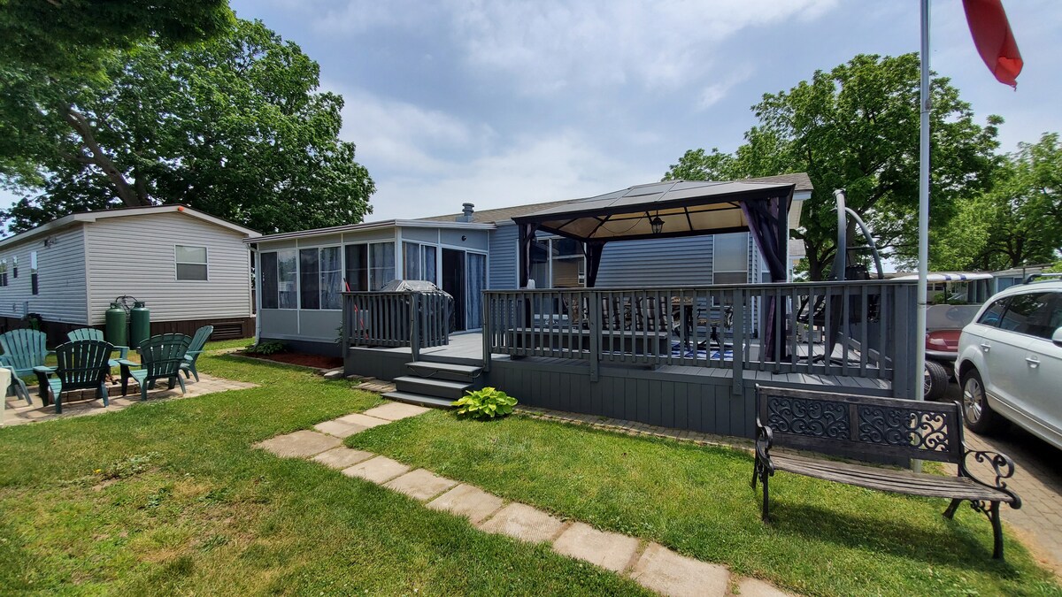 Bienvenido a nuestro apacible, sereno y tranquilo refugio de 1,7 acres rodeado de árboles en la hermosa Niagara-on-the-Lake. Nuestro encantador bungalow de techos altos ofrece una experiencia única con amigables gallinas y gansos de granja en el lugar, un jardín que cuenta con más de 100 rosas y plantas, una sauna y un pozo de fuego. Relájate en un entorno tranquilo, crea recuerdos duraderos y disfruta de la combinación perfecta de comodidad y belleza natural. Cerca de bodegas y atracciones. ¡Reserva ahora para una escapada familiar inolvidable!
