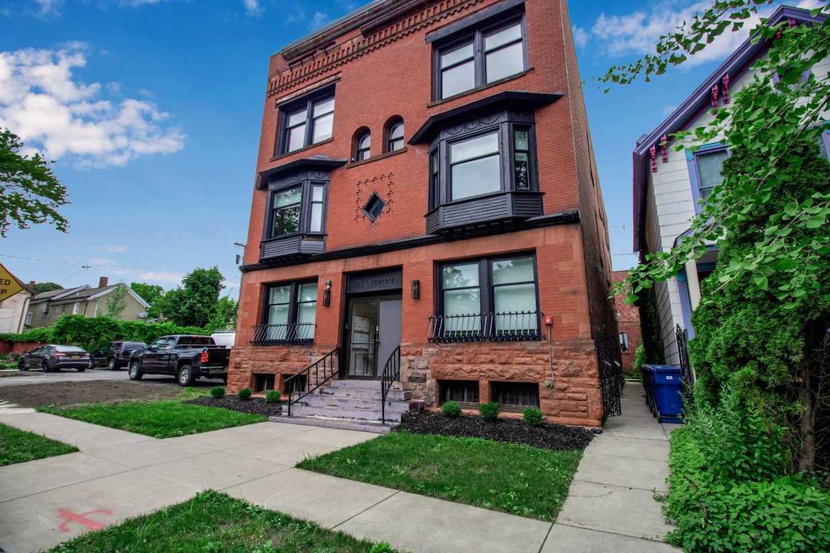 Casa de cuatro dormitorios y dos baños ubicada en una calle tranquila en el corazón de Buffalo, a solo segundos (literalmente) de los restaurantes y tiendas de Elmwood Ave y a minutos del resto de la ciudad. El espacio fue diseñado específicamente para satisfacer tus necesidades como huésped con características convenientes como cerraduras inteligentes en las puertas delantera y trasera para un fácil acceso, estacionamiento fuera de la calle, nuevos colchones acogedores, nuevas lavadoras extragrandes en el segundo piso, wifi rápido, televisores inteligentes Roku y mucho más.
