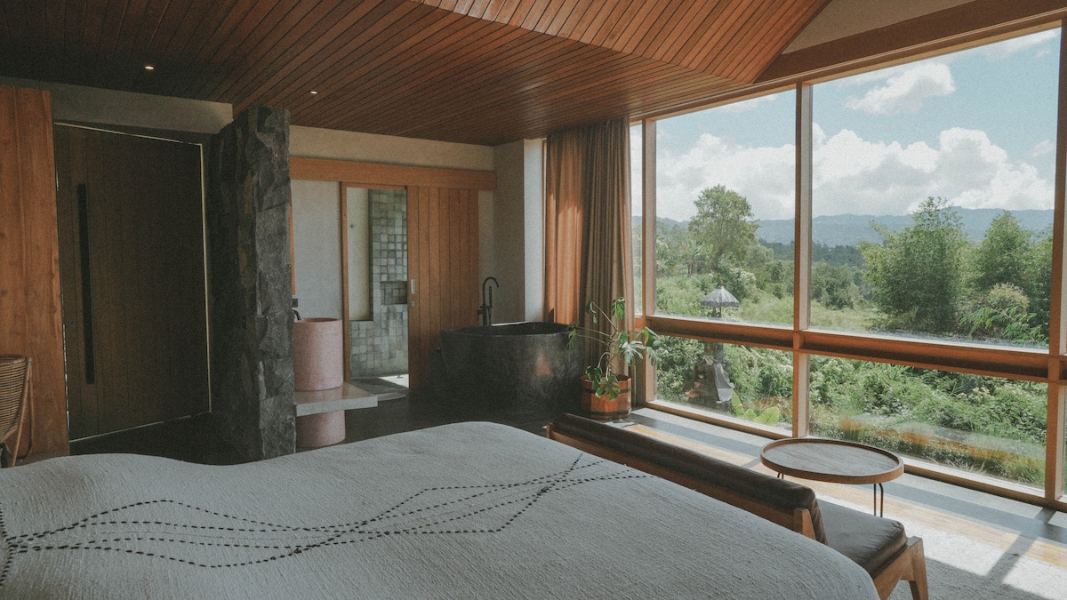 Experience luxe living in our Balinese tree house, nestled amidst the verdant countryside. This luxury cabin, resembling a tiny home, boasts an impeccable design that seamlessly blends with nature. Wake up to an amazing view of majestic mountains, right from your bed. Relax in the unique outdoor bathtub, surrounded by the serene whispers of the jungle. Feast on delightful BBQs on the private deck, set against a panoramic backdrop. Dive into the essence of Bali – where luxury meets the wild.