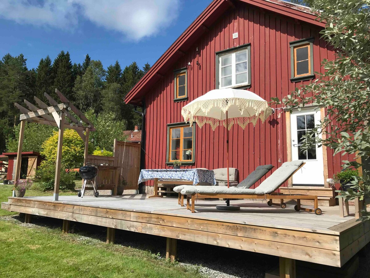 Esta casa de campo independiente tiene vistas al mar en un entorno rural aislado y hermoso, a solo 5 minutos de la autopista E6. Recientemente se ha reformado por completo manteniendo el estilo antiguo. En la primera planta hay una sala de estar con una acogedora chimenea (estufa de hierro), un baño con inodoro, ducha y calefacción por suelo radiante, una cocina pequeña pero totalmente equipada y un comedor con puertas a la terraza. En la segunda planta hay un loft abierto con altura limitada que funciona como dormitorio con 4 camas en total.