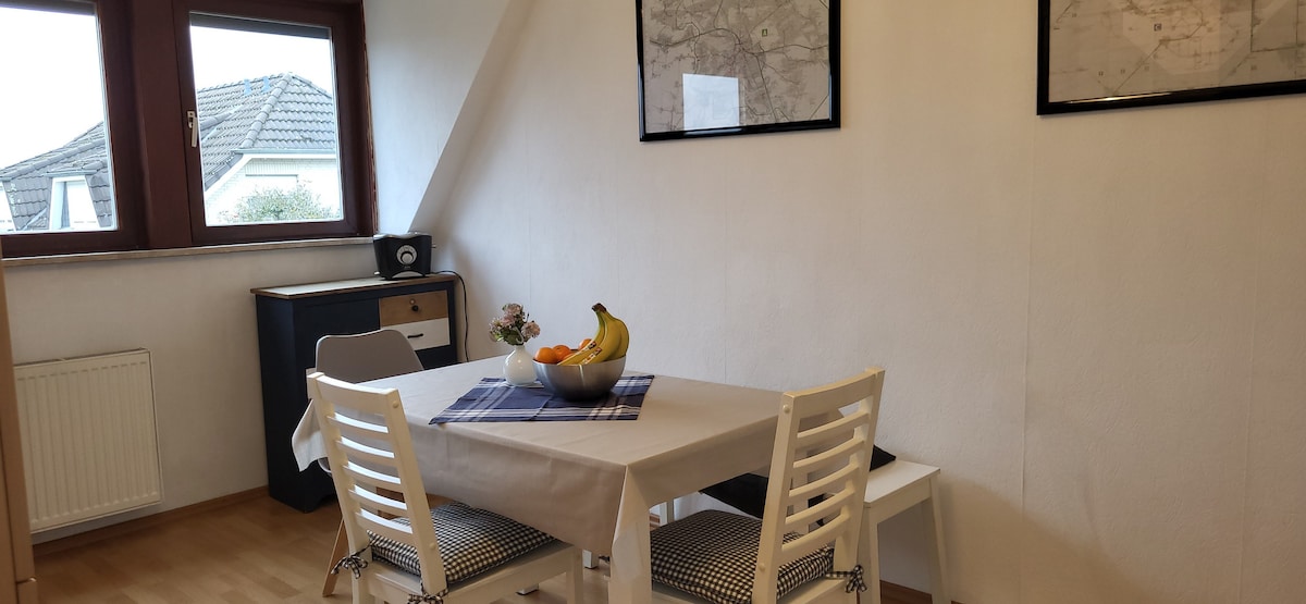 ¡Bienvenido a tu elegante ático en el canal! El luminoso y espacioso apartamento tiene capacidad para cuatro personas y está equipado con todas las comodidades importantes Relájese en la acogedora sala de estar, prepare comidas en la cocina totalmente equipada o disfrute de un baño relajante en la bañera extragrande. Gracias a la cercana estación de tren se tiene buenas conexiones con la universidad, el aeropuerto, la feria y se llega en pocos minutos al centro de la ciudad.