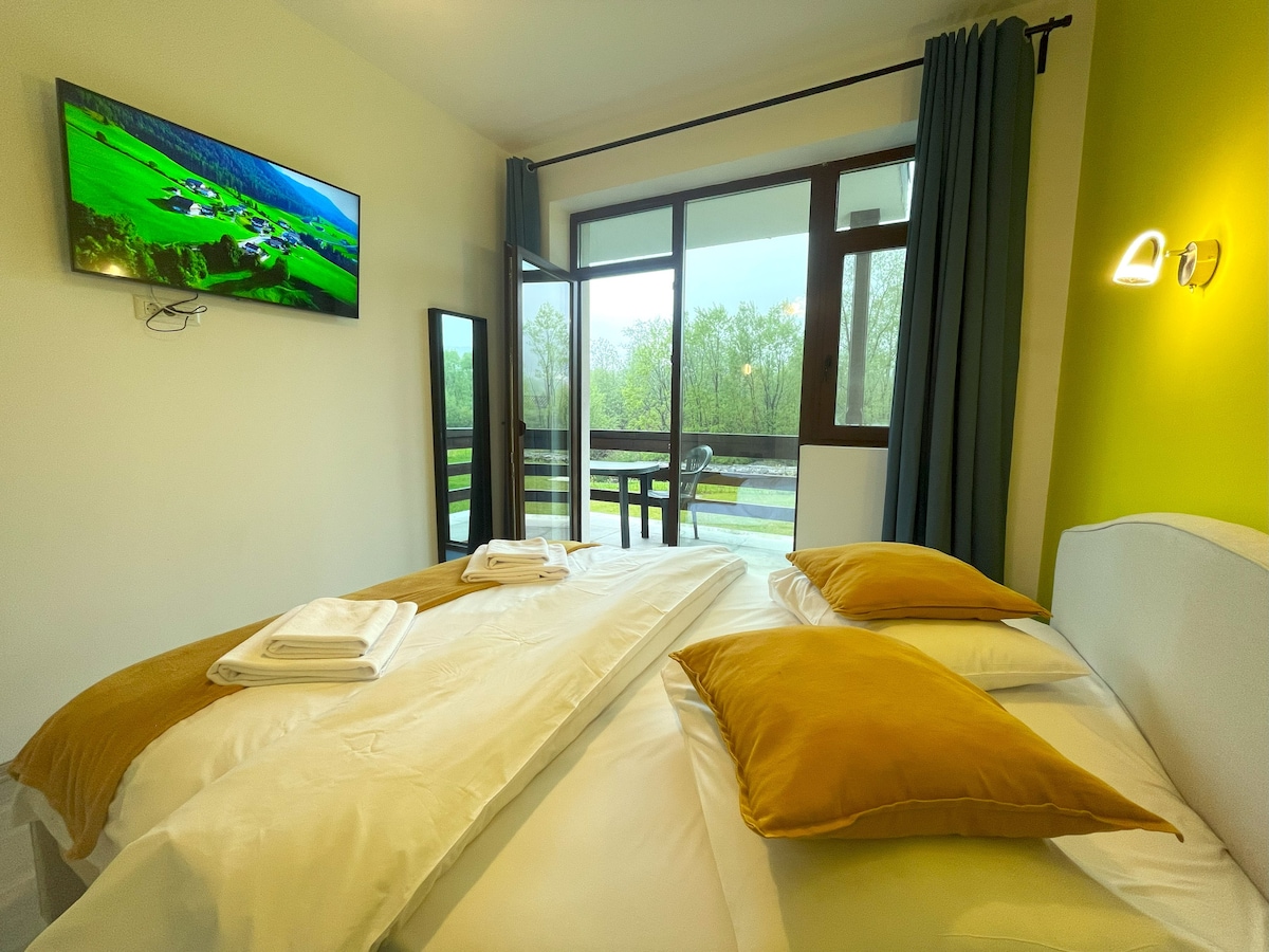 Welcome to our riverside sanctuary in Busteni - an enchanting two-bedroom apartment that aims to impress its guests with a gorgeous river and mountain views from the delightful outdoor terrace lounge. Step into a chic interior that seamlessly combines comfort and style, complete with a fully equipped kitchen. Reconnect with nature at this tranquil riverside escape, conveniently located within walking distance of the city center and other captivating attractions in the area.