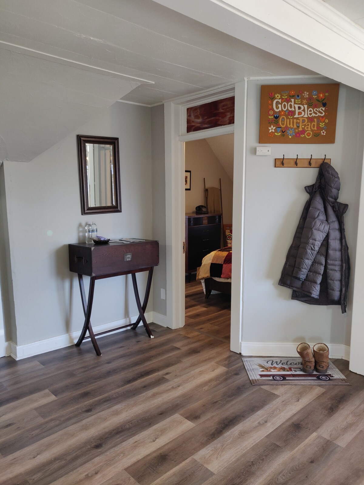 St Augustine Flat es el mejor lugar de la ciudad para alojarse. Ubicación y espacio inigualables, ahorra $$. Ubicado en la prestigiosa “Pill Hill” a poca distancia a pie de todo el centro de Rochester, a 1 cuadra del Hospital St. Marys (en el fondo de la foto). Desde St Marys, toma el servicio de traslado gratuito de Mayo a otras ubicaciones de Mayo. Hermosos pisos de madera, 1 dormitorio con vestidor, baño completo, cocina, wifi rápido, televisión inteligente. El espacio está arriba. ¡Las escaleras son empinadas con una huella estrecha! ¡Espero tu llegada!