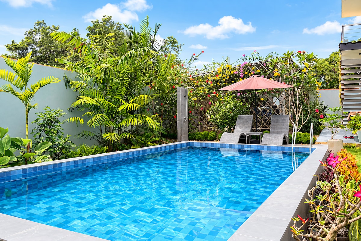 Welcome to your secluded retreat, located just 1 km from downtown, nestled in one of the area's most peaceful locales. Awaken to the soothing sounds of ocean waves and the melodic chirping of birds, offering an escape from the hustle and bustle of town. The newly renovated villa offers 68 sqm (732 sq ft) of indoor space, as well as a 17.5 sqm (188 sq ft) balcony. There is plenty of room for your entire group to stretch out and relax!