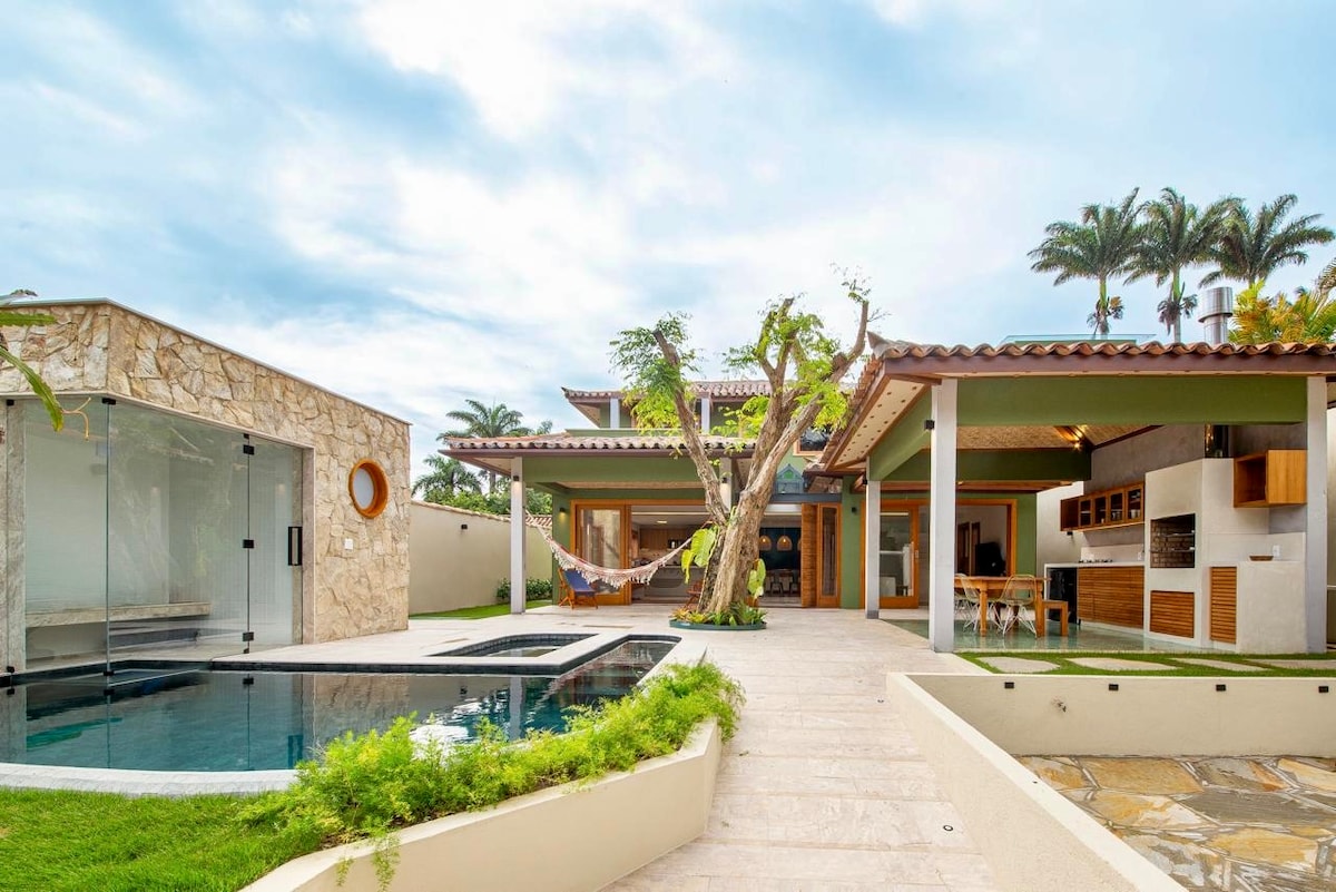 Casa exclusiva en Búzios, ideal para amigos, parejas o familia. 4 suites con aire, WiFi fibra, pileta y parrilla. A pasos de Porto da Barra y se puede ir caminando a las playas Ferradurinha, Praia dos Amores y Geribá. Podemos recomendar personal para desayuno, limpieza y cocina (opcional). Naturaleza, confort y excelente ubicación para una estadía inolvidable.