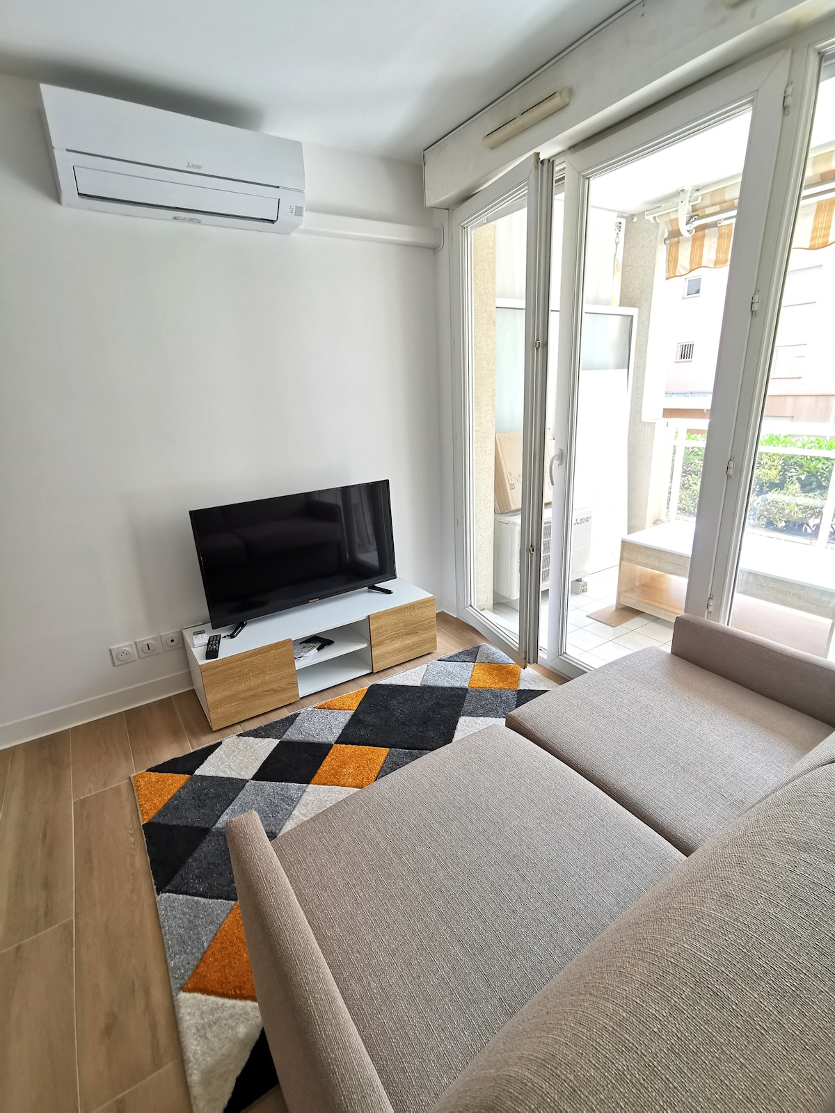Cagnes-sur-Mer, entre Niza y Cannes, estudio amueblado para 2 personas, cocina independiente, balcón, aire acondicionado, ascensor, aparcamiento privado, cerca de todos los servicios a pie: tiendas, restaurantes, paseo marítimo a 5 minutos a pie, estación de tren a 10 minutos a pie. Cocina independiente: placa de inducción, nevera, microondas, lavadora, tostadora, hervidor, cafetera Nespresso. Habitación principal: sofá cama BZ, armarios, televisor. Se proporcionan sábanas y toallas.