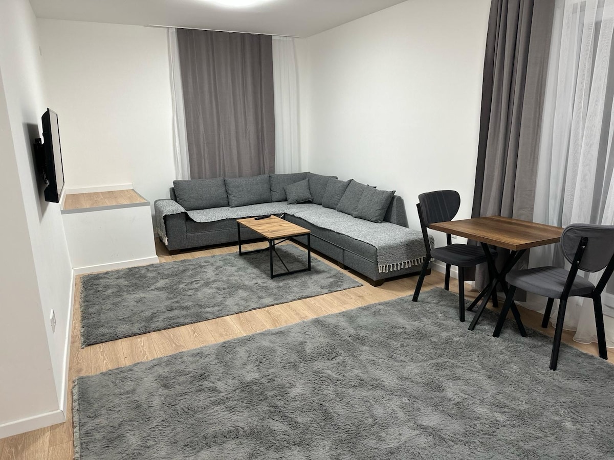 Apartamento tranquilo y elegante en un barrio tranquilo, a solo 5 minutos del centro comercial Skopje City Mall y Esgate Mall, y a 10 minutos del centro de la ciudad. Perfecto para parejas o viajeros solitarios. Disfruta de dos terrazas privadas, un dormitorio acogedor con una cama premium, una cocina totalmente equipada, WiFi rápido, TV inteligente y aire acondicionado. Ubicado en el 2do piso (sin ascensor). Estacionamiento público gratuito cerca. Ideal para estadías cortas o largas. Siéntete como en casa mientras disfrutas de privacidad y comodidad. ¡Te damos la bienvenida a Dimov Urban Stay!