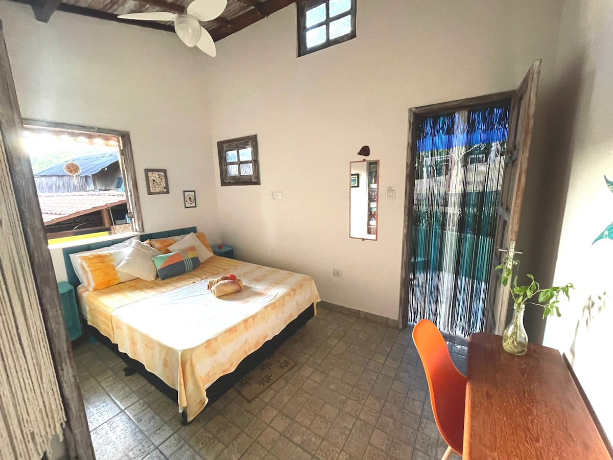 Situado en la playa de Alcantaras, familia nativa y parte esencial de la comunidad de la Isla de Boipeba, la habitación es ideal para viajeros solos o parejas. Cuenta con baño privado compuesto por inodoro y ducha eléctrica, lavabo, ventilador, mosquitero, cama doble, estantes y minibar. Más alejada del pueblo de Moreré pero con fácil acceso a los mercados, bares y restaurantes, la playa que será su hogar está llena de belleza natural, tranquilidad y noches estrelladas.