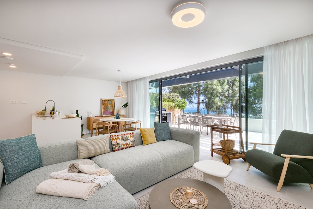 Penthouse Paradise: ¡Escapada de lujo en Calahonda! ✓ Adecuado para 6 personas (150 m2) ✓ 3 dormitorios grandes (2 con vistas al mar) ✓ 3,5 baños en suite ✓ Cocina totalmente equipada. ✓ Moderna sala de estar con televisor inteligente de alta definición, Netflix y estación de acoplamiento de sonido ✓ Aire acondicionado/calefacción Wifi ✓ de alta velocidad. ✓ Amplio balcón con bar, comedor y salón, parrilla y tumbonas. ✓ Comunidad con 2 piscinas con tumbonas ✓ Estacionamiento gratuito en el garaje. ✓ Una caja fuerte y persianas para seguridad ✓ Una bienvenida personal