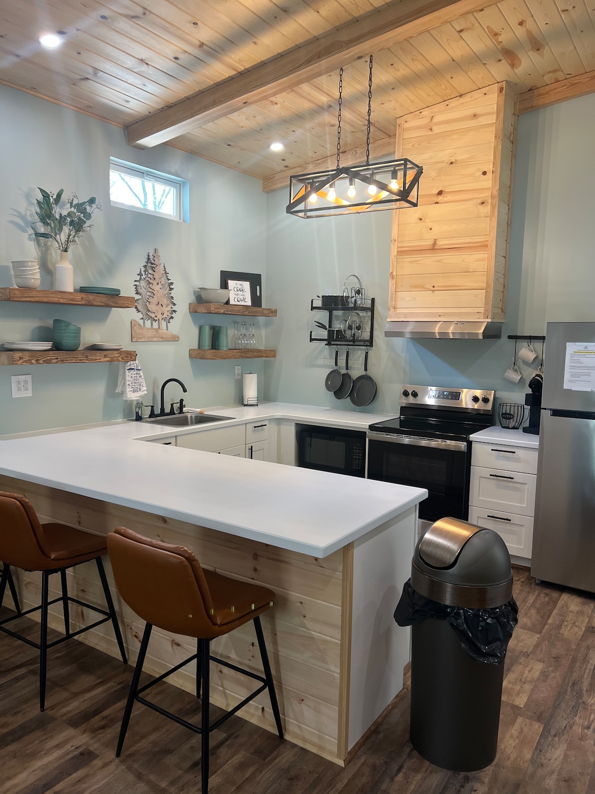 Esta casa de estilo rural ha sido completamente remodelada para incluir todas las comodidades de la vida moderna. La casa está equipada con electrodomésticos de cocina de acero inoxidable (incluyendo un lavavajillas), lavadora/secadora y parrilla en el patio. Hay televisores inteligentes disponibles tanto en la sala de estar como en el dormitorio principal. Los huéspedes pueden disfrutar de Netflix o iniciar sesión en cualquier cuenta de streaming. También hay wifi de alta velocidad y una impresora wifi ubicada en la oficina, que incluye escritorio, silla y cama tamaño queen.