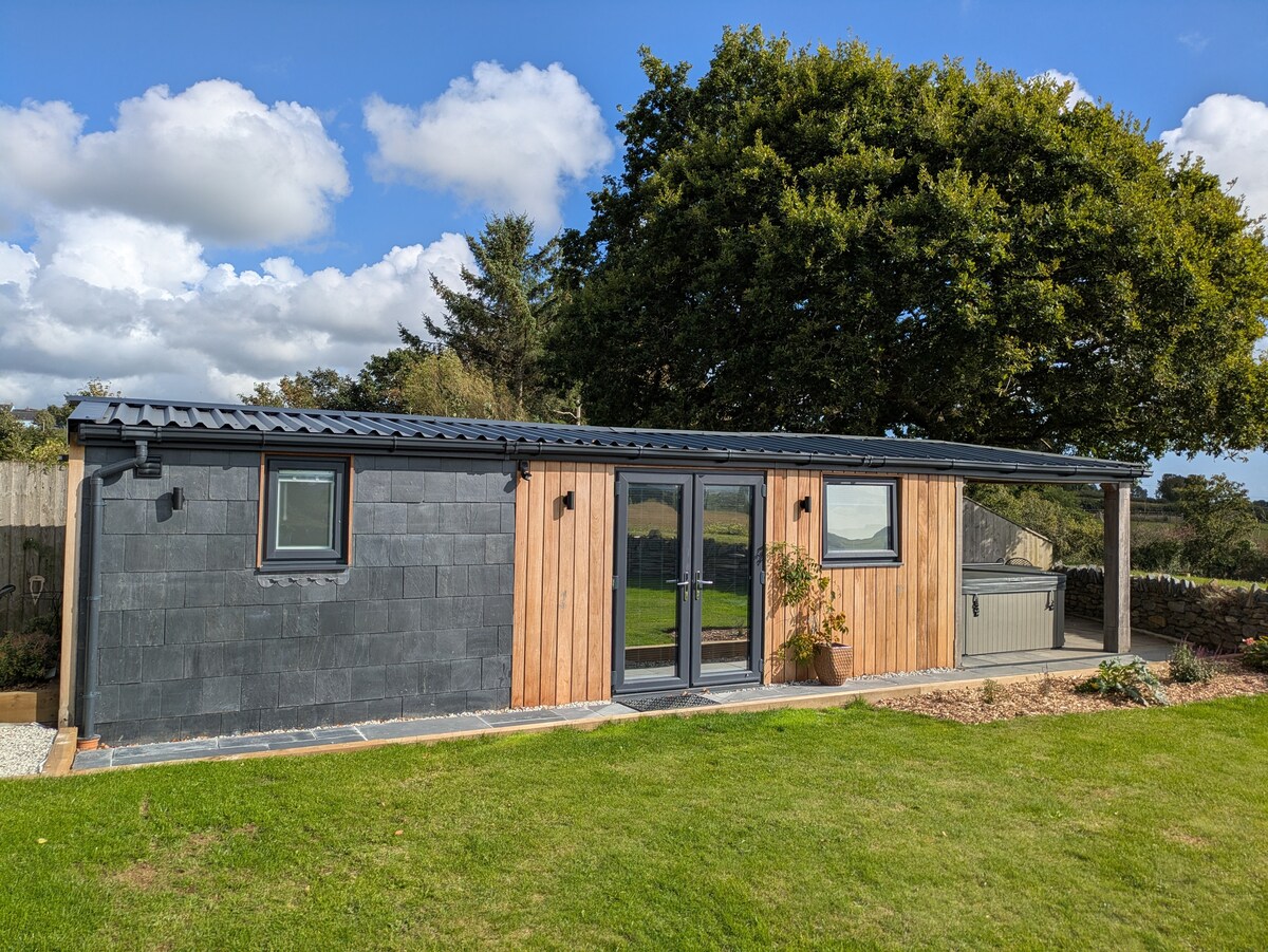 La cabaña de madera Devon Lodge con jacuzzi privado.