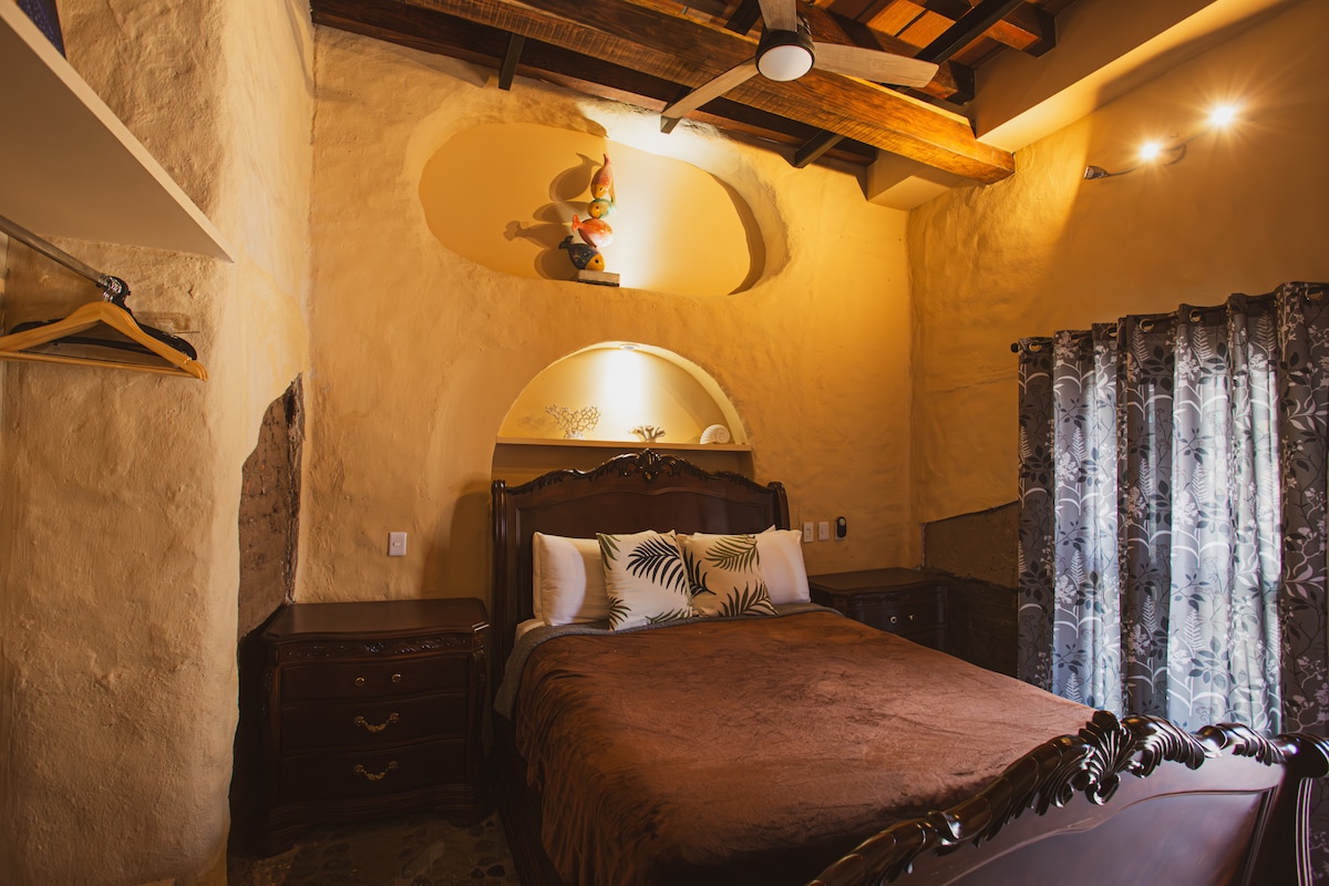 Nuestro estudio La Cruz de Huanacaxtle Villa cuenta con 1 acogedor estudio con cama tamaño king. El ambiente tranquilo y el hermoso entorno lo convierten en el refugio perfecto para los huéspedes que buscan tranquilidad. Con servicios como aire acondicionado, WiFi, TV inteligente, cocina pequeña, vistas parciales a la bahía, limpieza, lavadora y secadora en los terrenos, calefacción, piscina compartida, barbacoa compartida, ropa de cama de calidad y colchón de primera calidad, muebles interiores de calidad. En nuestra ubicación en la ladera, los huéspedes disfrutan de las vistas a la bahía y la brisa del mar. ¡Y 5 Casitas posibles!