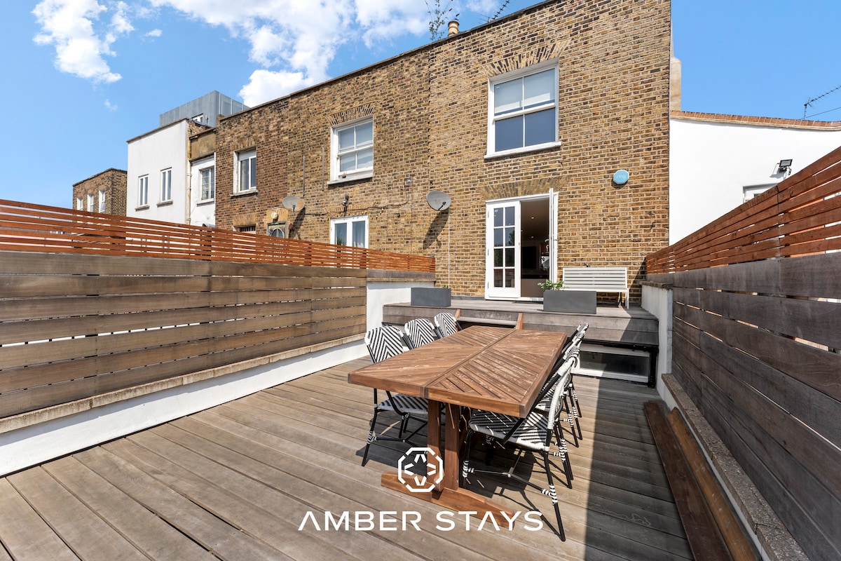 Te damos la bienvenida a un dúplex lujoso y tranquilo en el corazón de Londres. Disfruta de una vida lateral con una enorme cocina de chef y un comedor con capacidad para 10 personas. Relájate con un televisor de 70 pulgadas con Dolby Atmos o sal a una terraza con una barbacoa y un fogón. Cada uno de los 3 dormitorios dobles tiene su propio baño para la máxima privacidad. A minutos de Kings Cross, Granary Square y joyas locales como excelentes pubs y el Islington Tennis Centre. ¡Tu estancia ideal en Londres te espera!