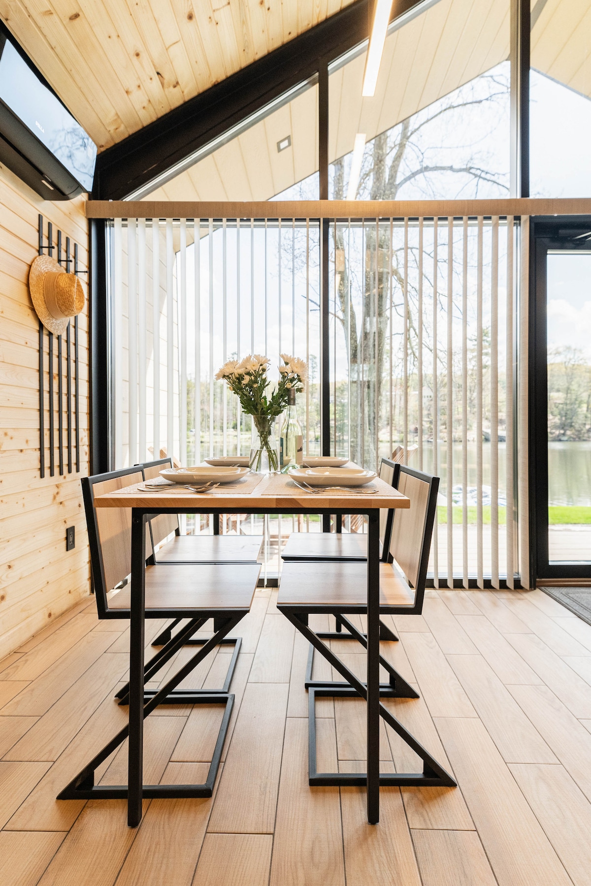 Escápate a la cabaña frente al lago en Leisure Lake Resort, una joya escondida en el corazón de la belleza natural de Pocono Township. Rodeado de serenas vistas al lago y exuberantes bosques, este chalet ecológico es tu refugio perfecto. Disfruta de botes de remos, pesca y ciclismo de cortesía de marzo a octubre, sumergiéndote en los tranquilos ritmos de la vida junto al lago. Con una acogedora chimenea eléctrica, dos camas tamaño queen y amplias ventanas que traen la naturaleza al interior, es una escapada ideal para la relajación y la aventura.
