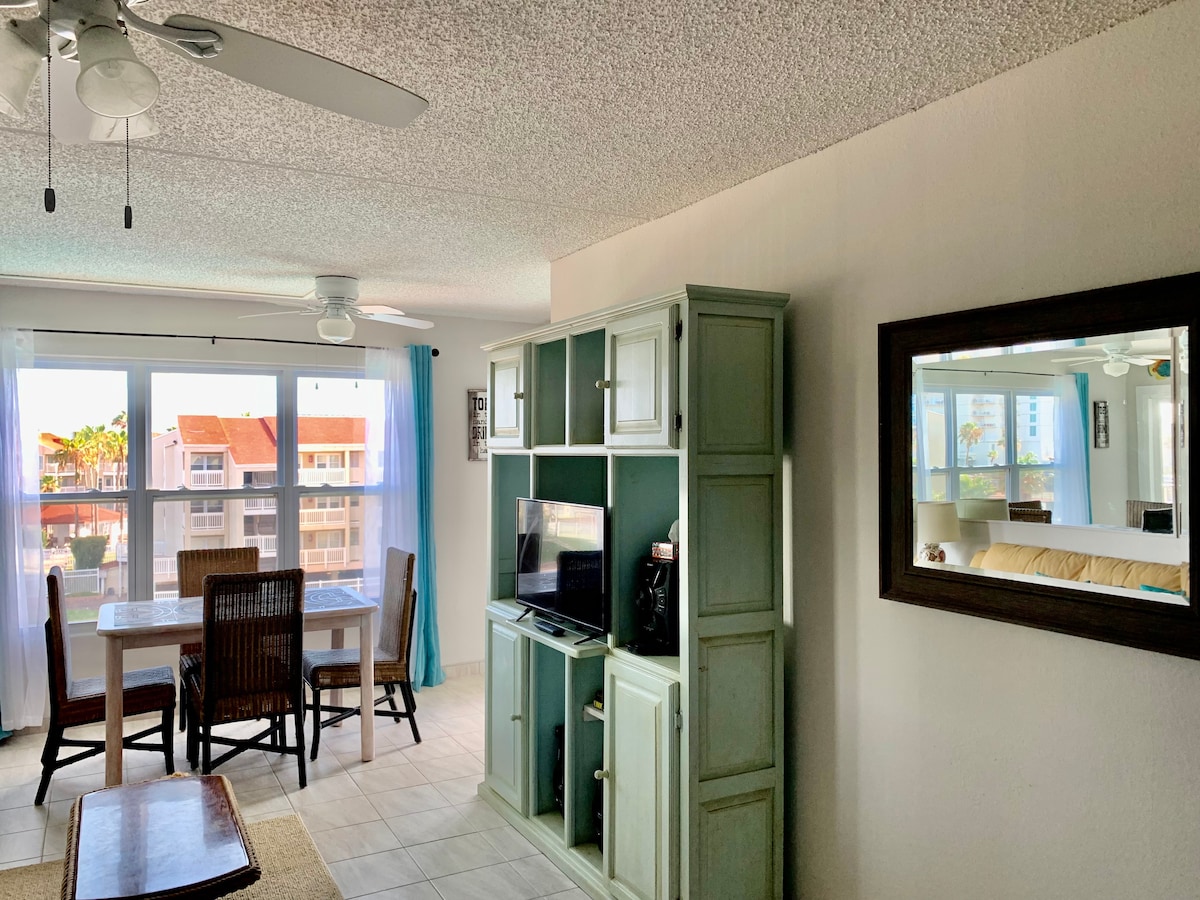 ¡Te damos la bienvenida a un condominio de excelente relación calidad-precio en South Padre Island! ★ 1 dormitorio y 1 baño (2 camas y un sofá cama) Apartamento en el ★ primer piso ★ ¡INCREÍBLE espacio de servicios al aire libre! ★ Elementos básicos de cocina ¡★ Televisores para tu entretenimiento! ★ ESTACIONAMIENTO GRATUITO (1 vehículo) Internet ★ RÁPIDO. ★ ¡Todos tus utensilios de cocina! Aire acondicionado ★ central y deshumidificador para una estadía cómoda MÁXIMO ★ 6 personas ¡A solo unos pasos de las famosas playas tropicales de South Padre Island!