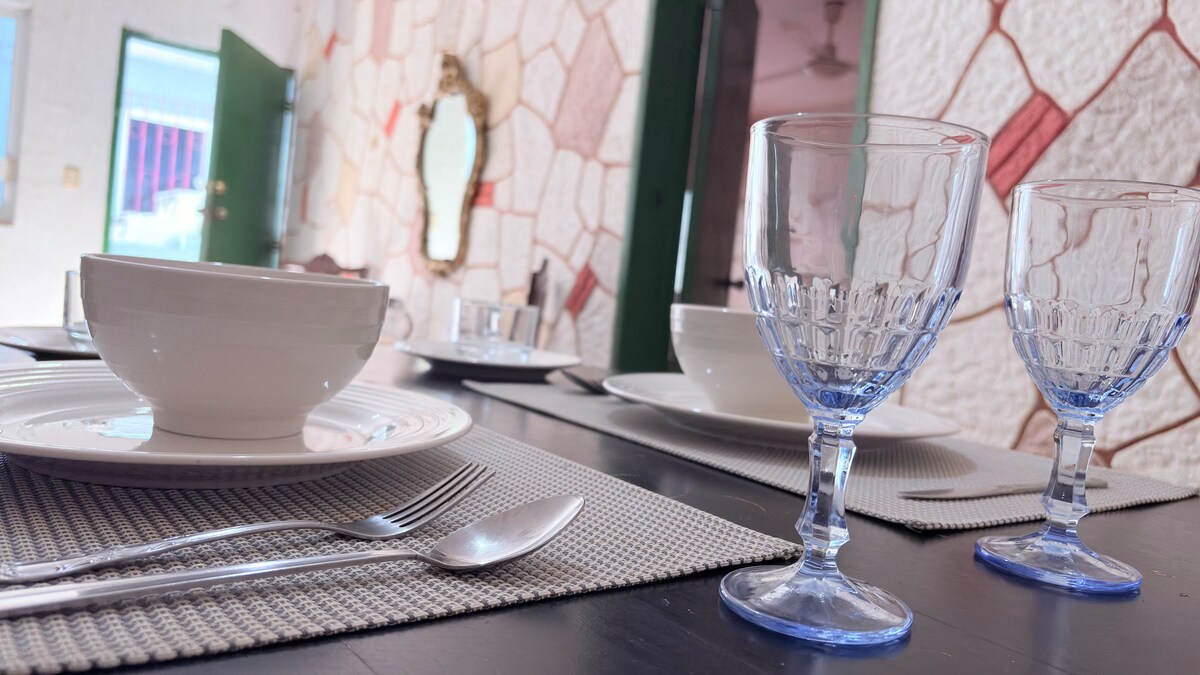 Dear guests, we offer you the opportunity of the exclusive use of this cozy restored old house in the historic neighborhood of San Román. It is ideally located for tourists visiting the historic walled city of Campeche and wanting to experience the peaceful atmosphere of San Román, a 10-minute walk from the historic center and a 5-minute walk from the boardwalk. There are a variety of restaurants in the area. The house is equipped with a kitchen, hot water, optic fiber internet and fully A/C