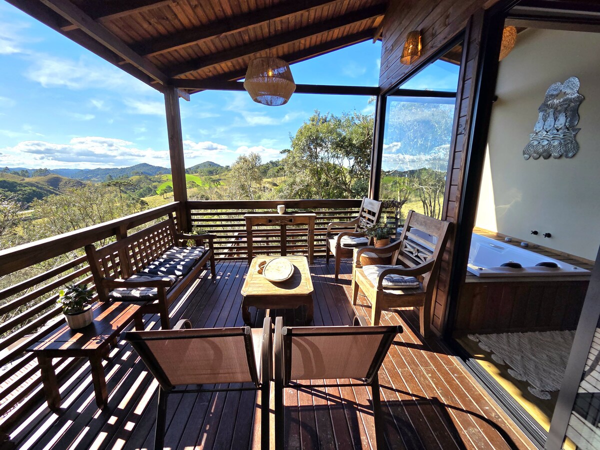 Disfruta de una experiencia única y de lujo quedándote en este lugar tan especial. La casa fue diseñada y construida para proporcionar al huésped la integración con el paisaje de la región. El lugar está increíblemente rodeado de montañas, para cualquiera de los ángulos la vista es increíble. La casa tiene dos plantas, el spa está arriba y tiene una vista panorámica. Puedes contratar un tour en UTV. La ruta recorre nuestra región, que está rodeada de montañas, pasamos por búfalos y ríos.