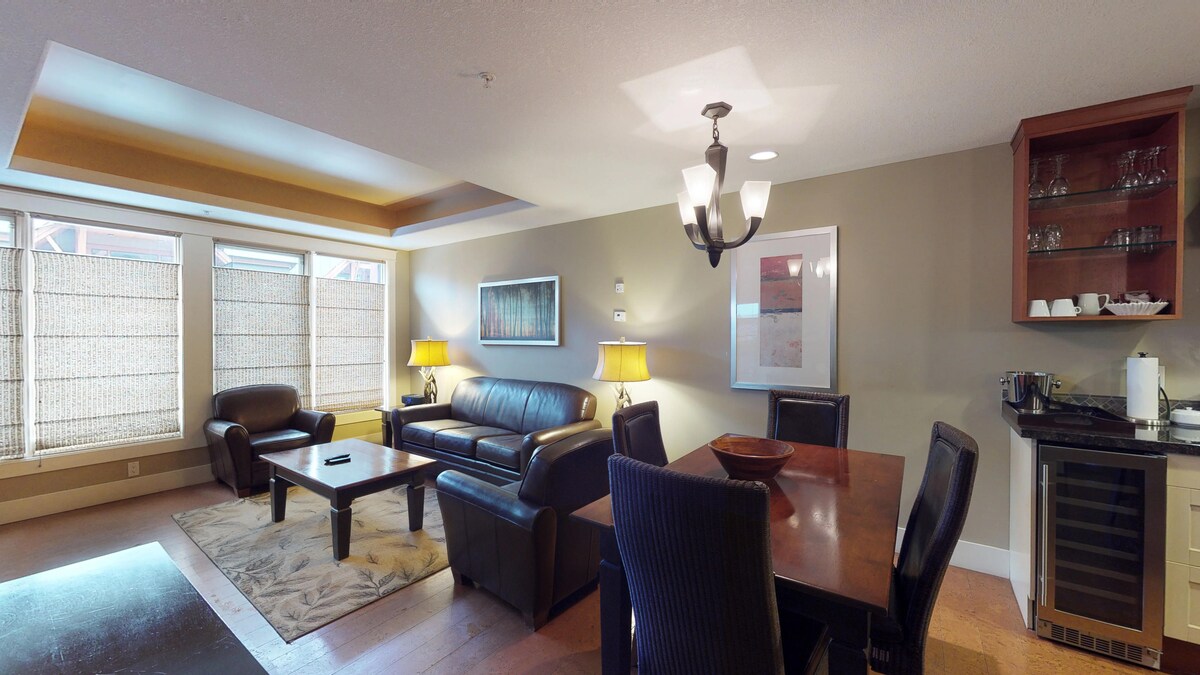 Te damos la bienvenida a nuestra lujosa escapada a la montaña en el corazón de las Montañas Rocosas canadienses. Nuestro exclusivo ático cuenta con un majestuoso techo abovedado, muebles de alta gama, cocina gourmet totalmente equipada, balcón y estacionamiento subterráneo. La suite principal tiene una cama tamaño king y baño privado. El estudio está configurado como el segundo dormitorio con una cama tamaño queen y medio baño al otro lado del pasillo. Perfecto para 1 o 2 parejas, pero tiene capacidad para 5 personas. ¡Cerca de todo! Licencia comercial RES-09964
